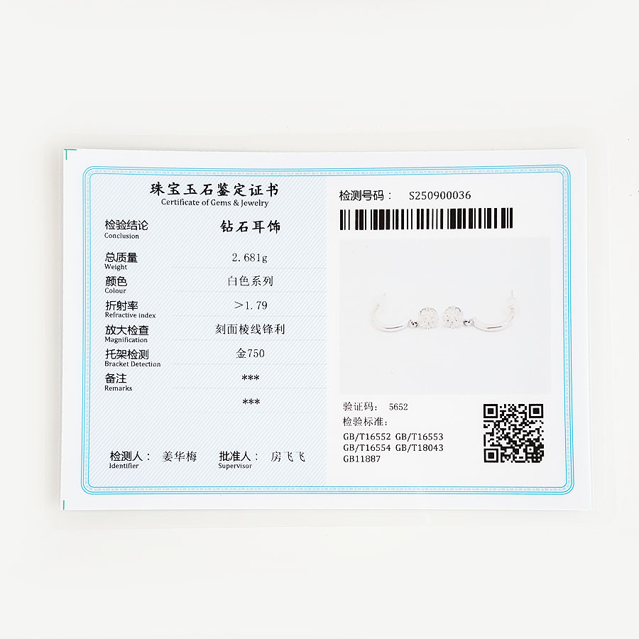 【天然正品】普柏琳AU750白金简约时尚花朵造型近40分钻石耳坠300825NJS43 现售价:2880