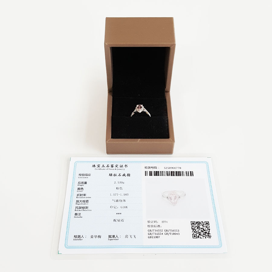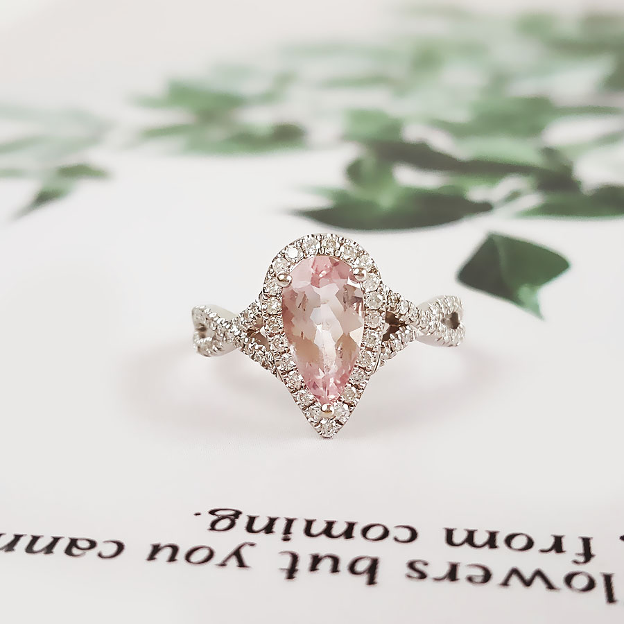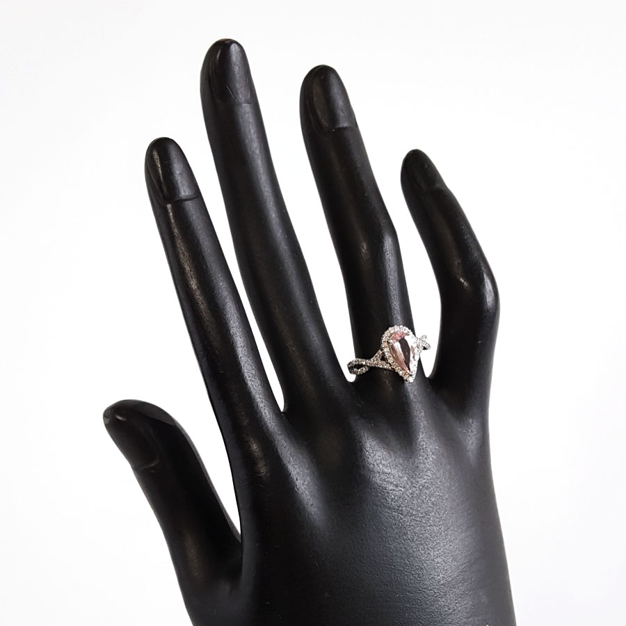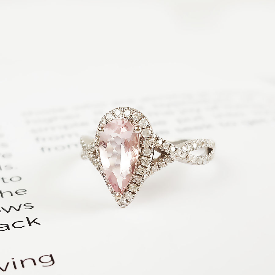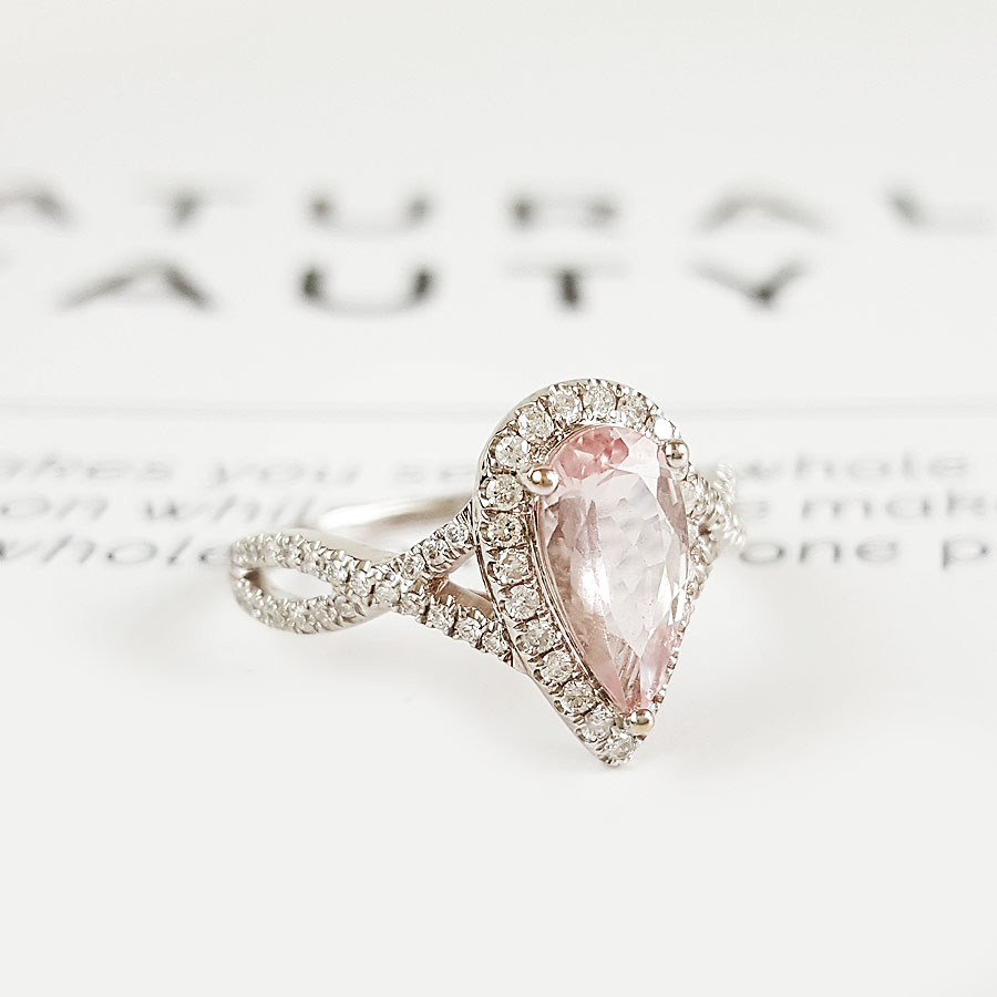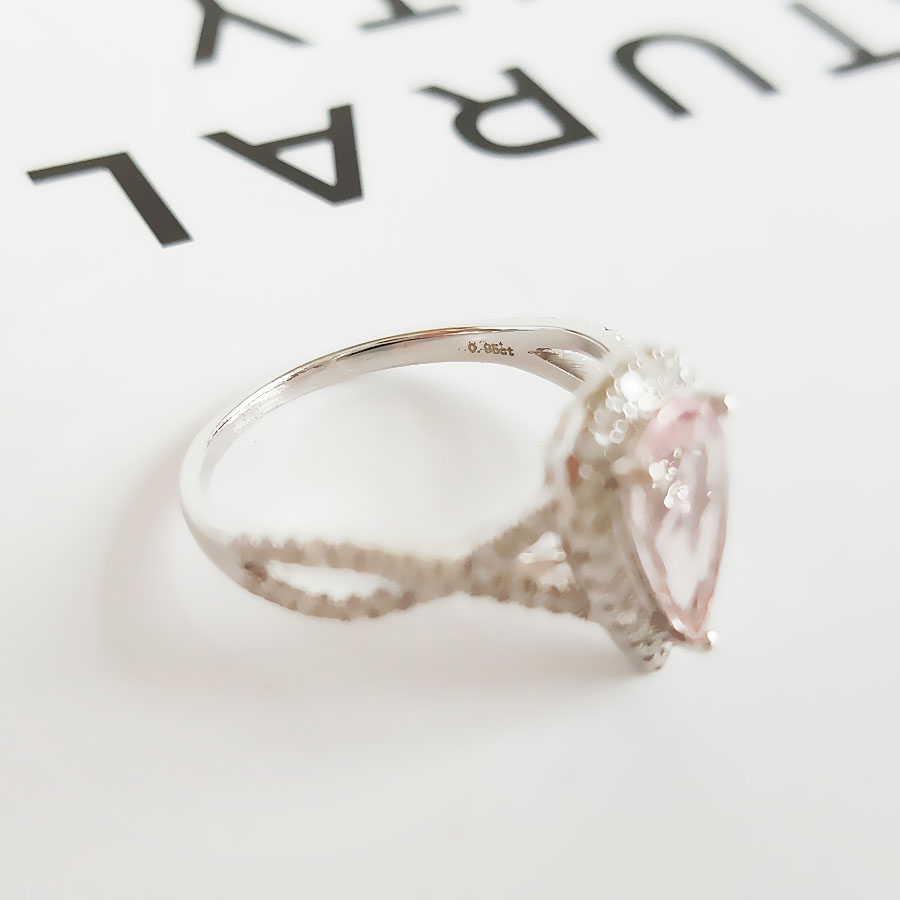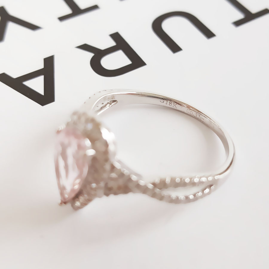 【天然正品】AU750精品白金镶钻镶天然约0.95克拉水滴形摩根石(好运、浪漫)戒指12号(戒圈可改)女士180925NJM26现售价:2880