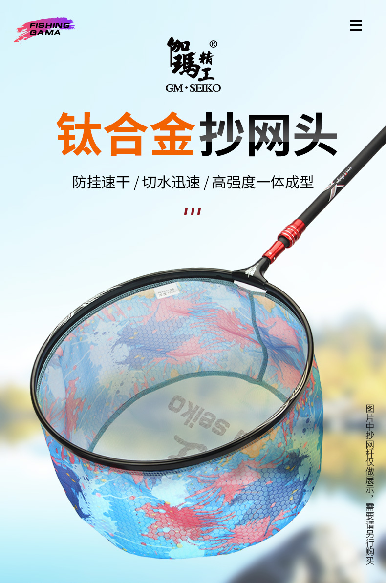 【48小时内发货】伽玛精工防挂抄网头小网眼钛合金尼龙网兜一体通用结实速干捞鱼网