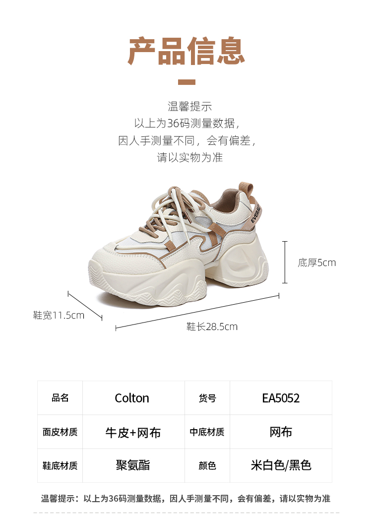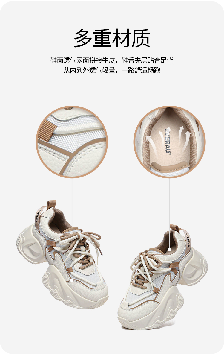 【澳洲品牌】EVERAU澳洲正品女春夏网面透气增高老爹鞋休闲鞋EA5052