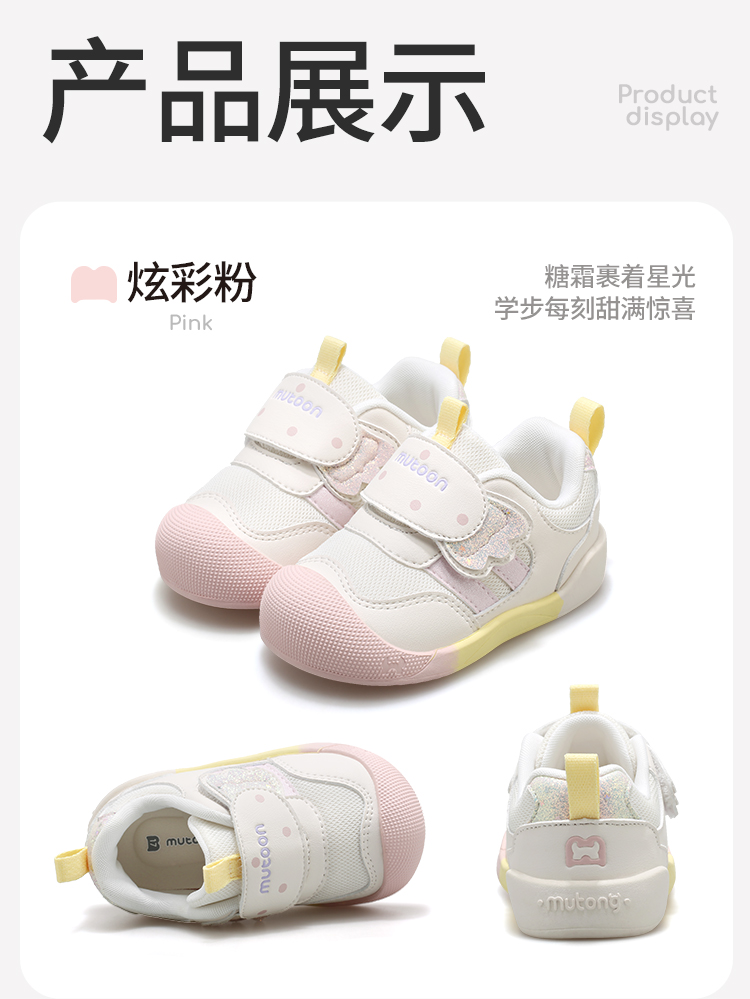 牧童2026春季新款学步鞋女宝宝防滑网面机能鞋软底包头女童稳护鞋
