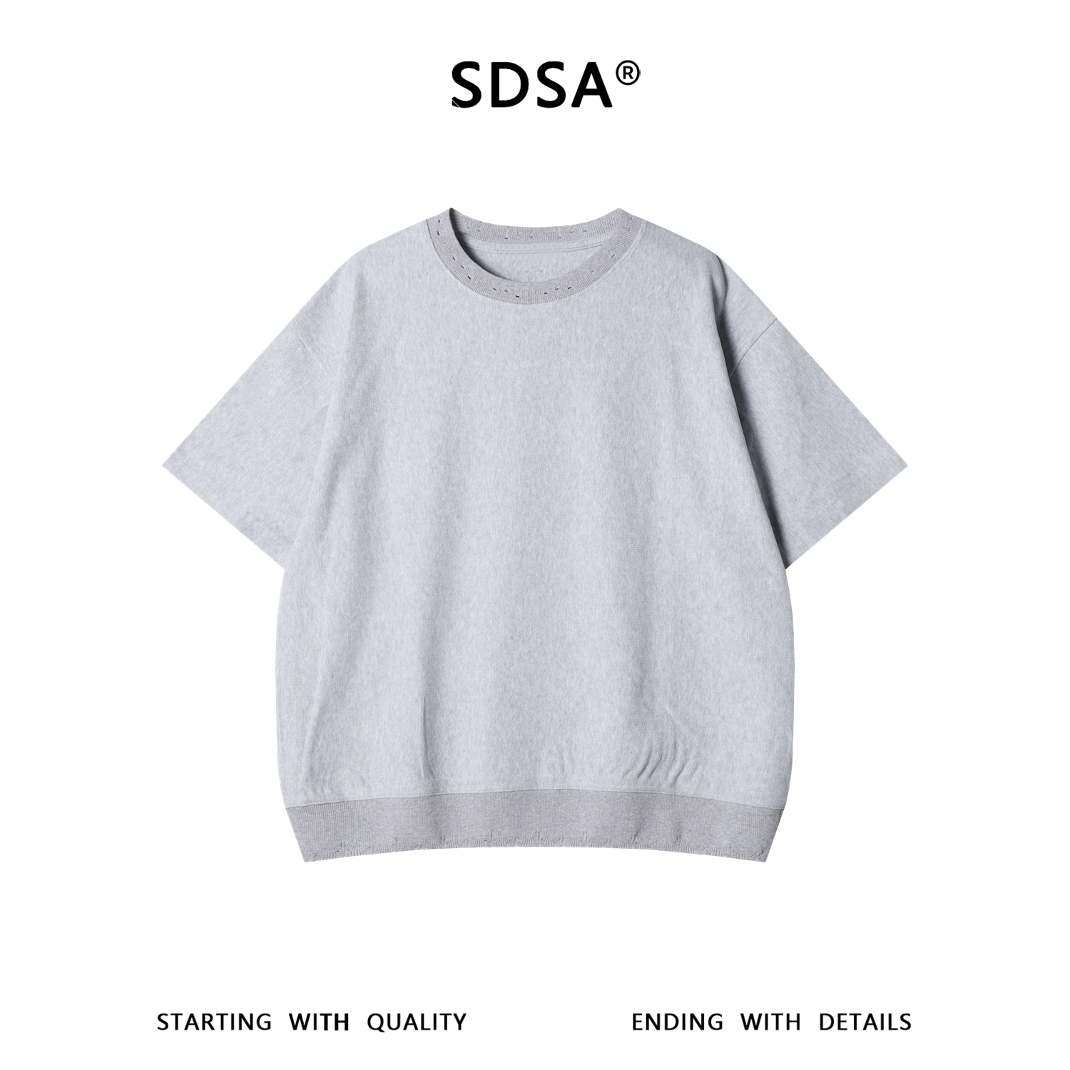 SDSA男装2026新款高贵轻奢时尚简约领口勾破设计圆领短袖T恤百搭