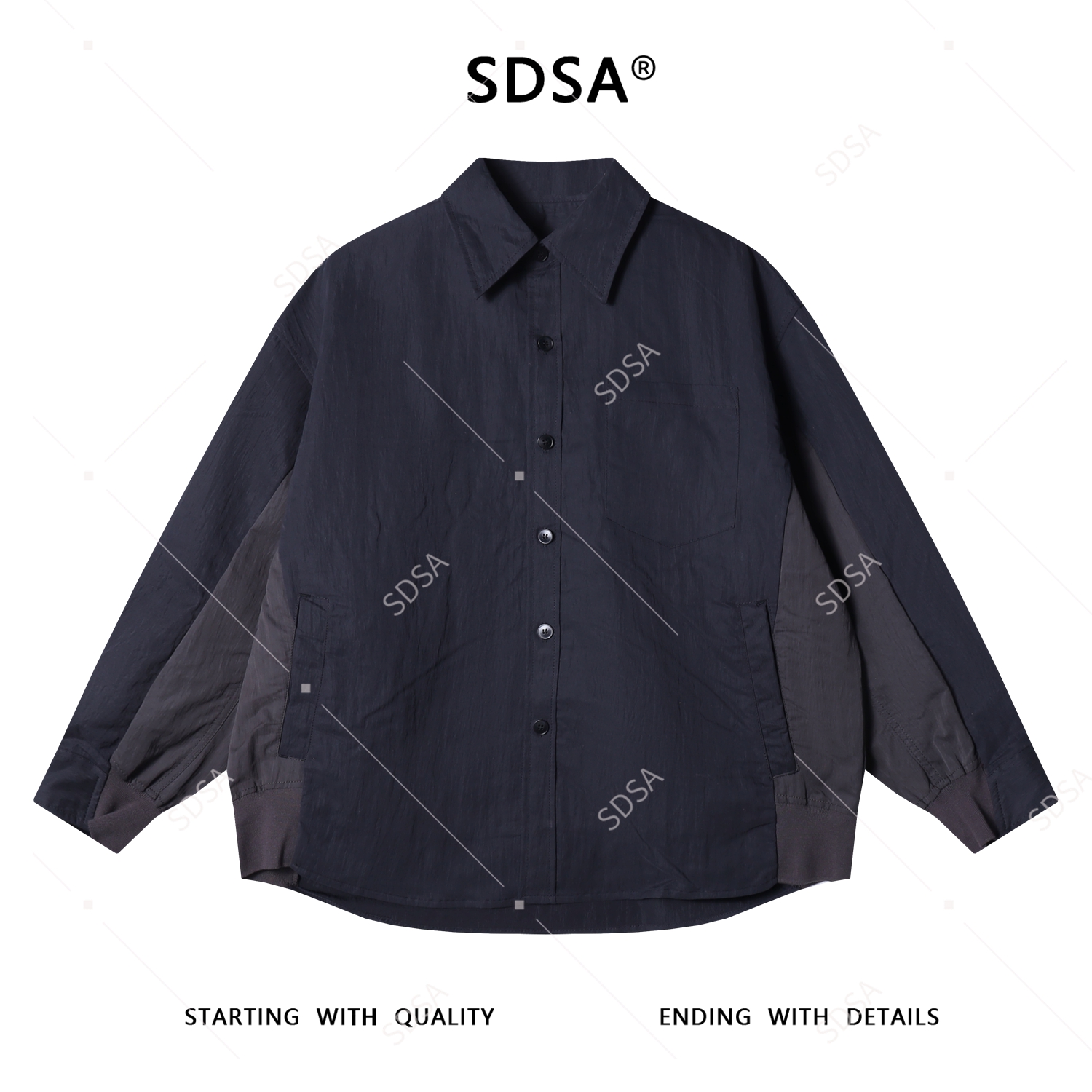 26Q8776SDSA男士秋冬新款痞帅男装韩版撞色拼接纽扣翻领长袖衬衫百搭时尚