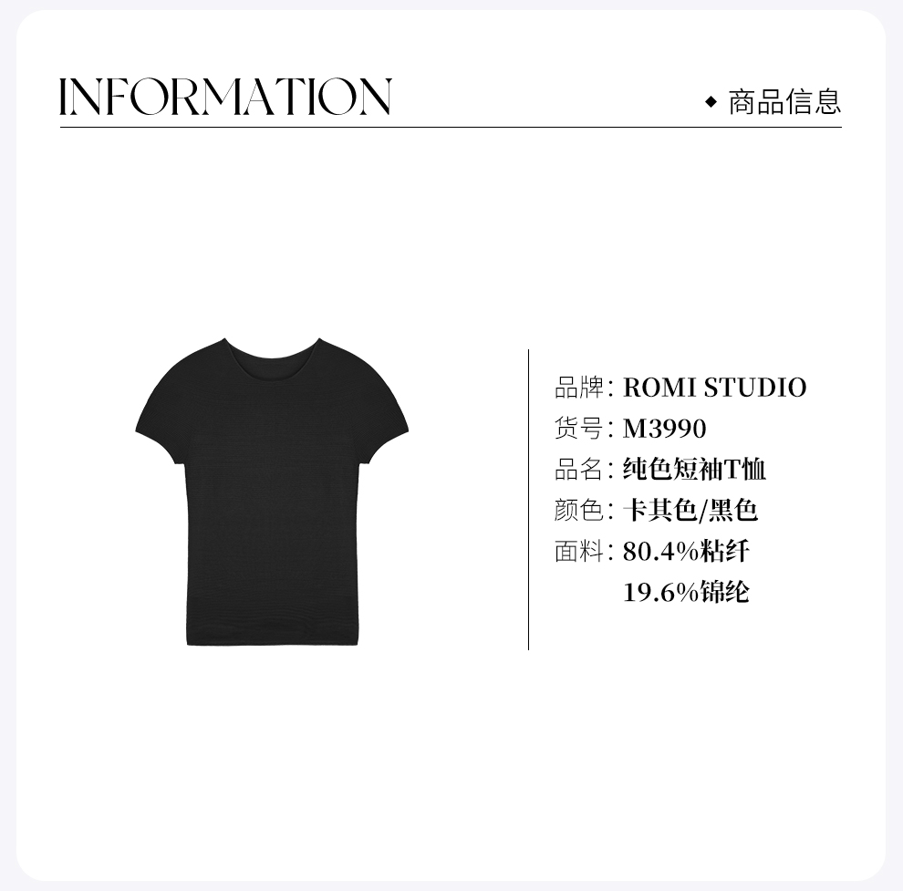 ROMI STUDIO“裸肤挚爱” 轻薄冰爽透气针织基础款纯色短袖T恤M3990