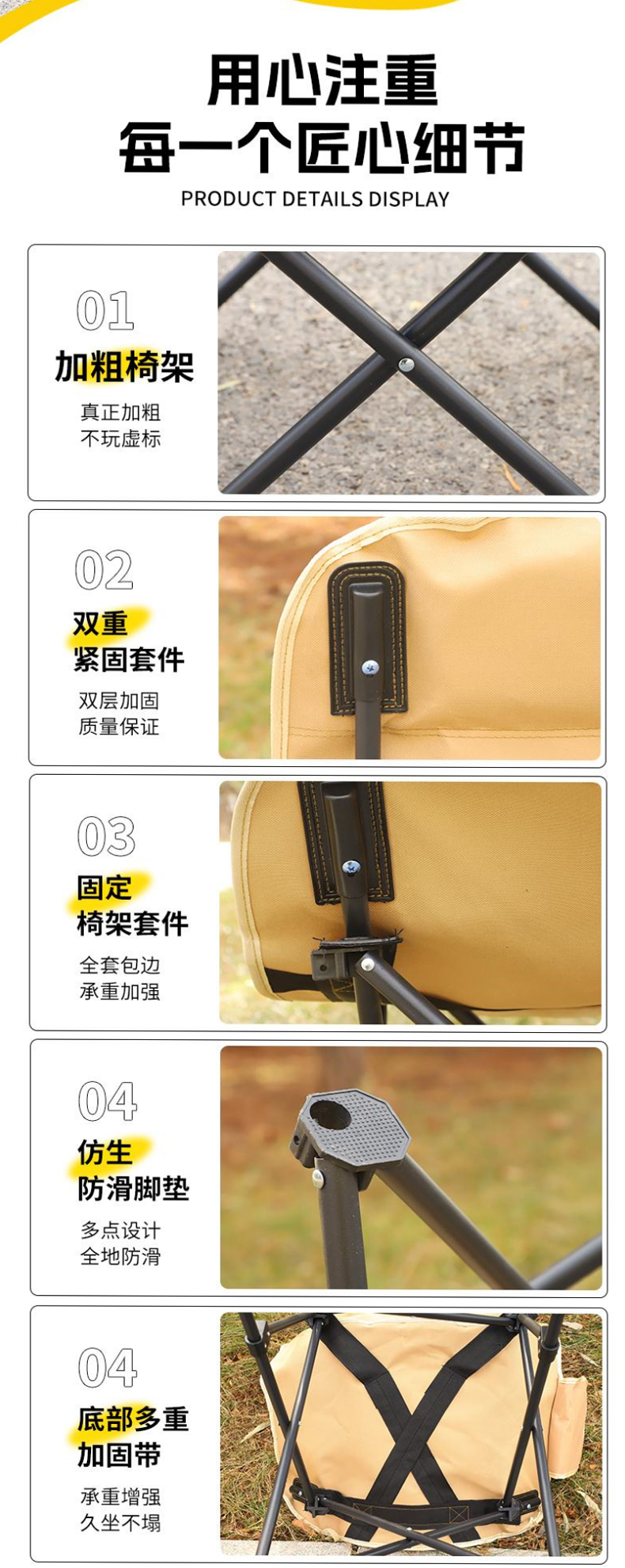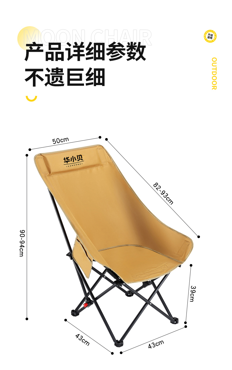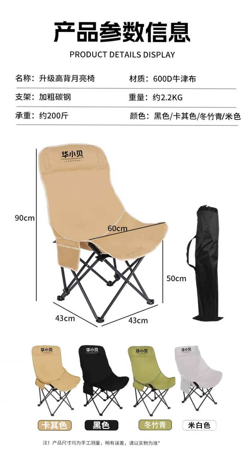 【华小贝舒适高背三档可调节月亮椅】90*43*43cm(黑色/卡其色/冬竹青)