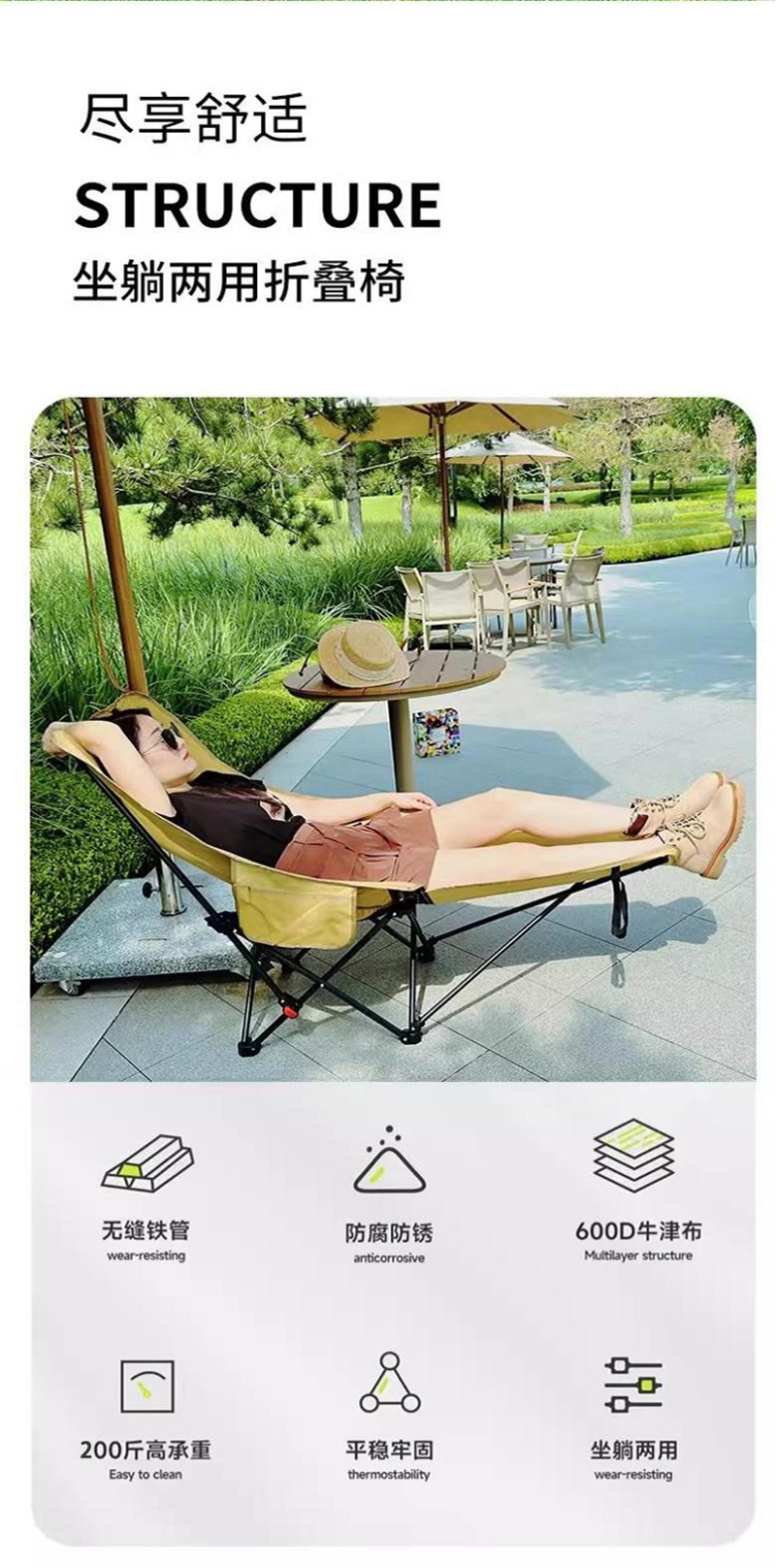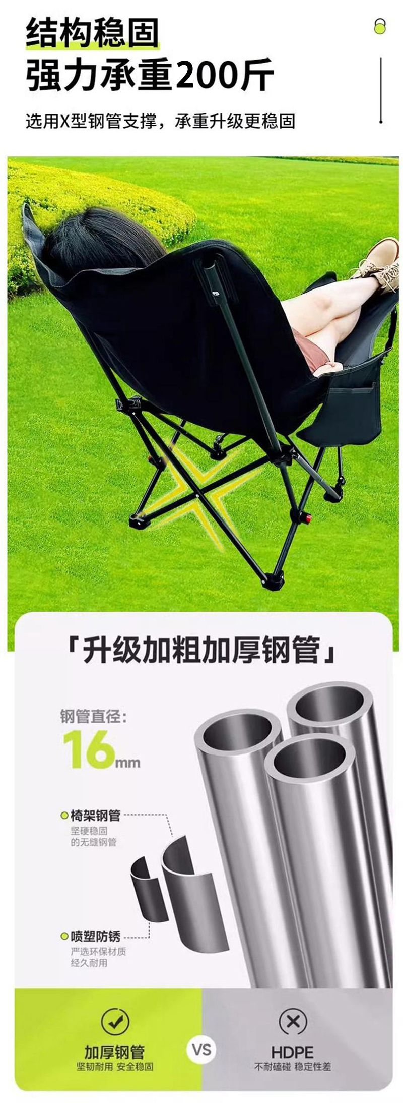 【华小贝高背月亮椅三档可调带腿托可拆躺椅】175*68*(一档95cm,二档88cm,三档80cm)(黑色/卡其色/冬竹青)