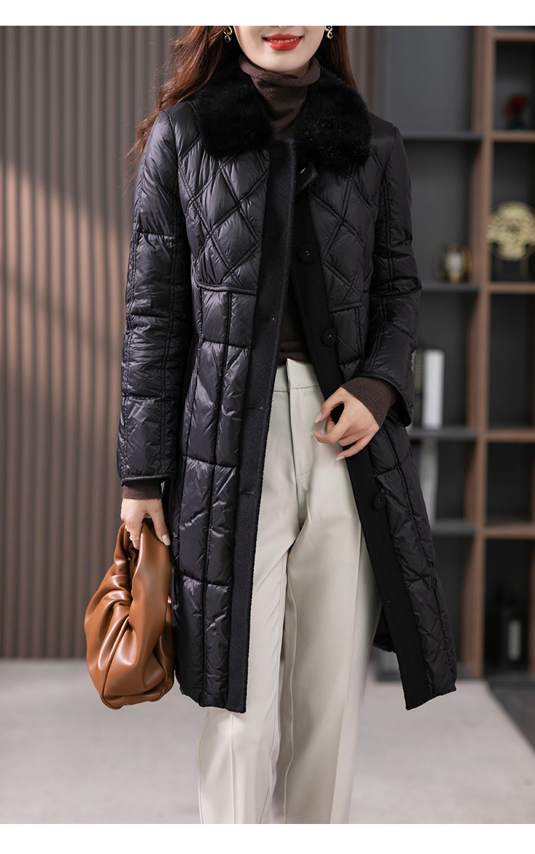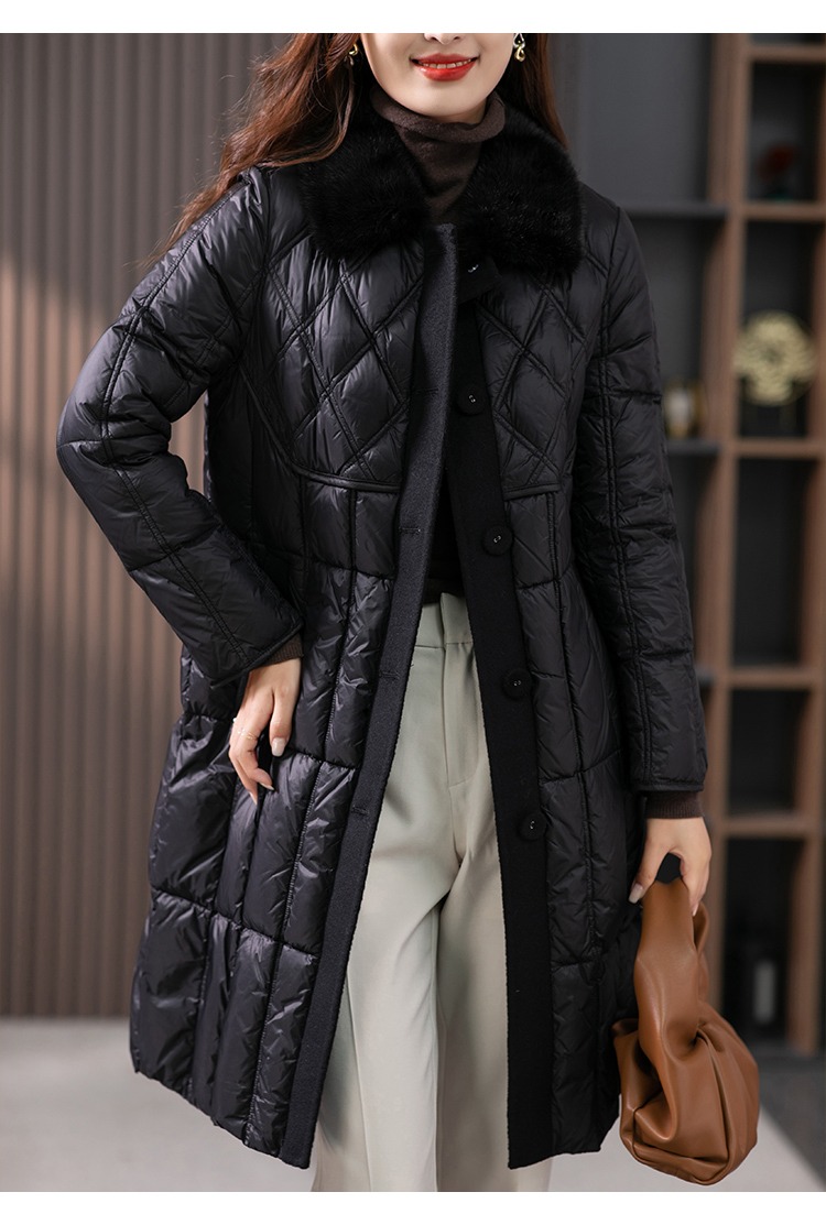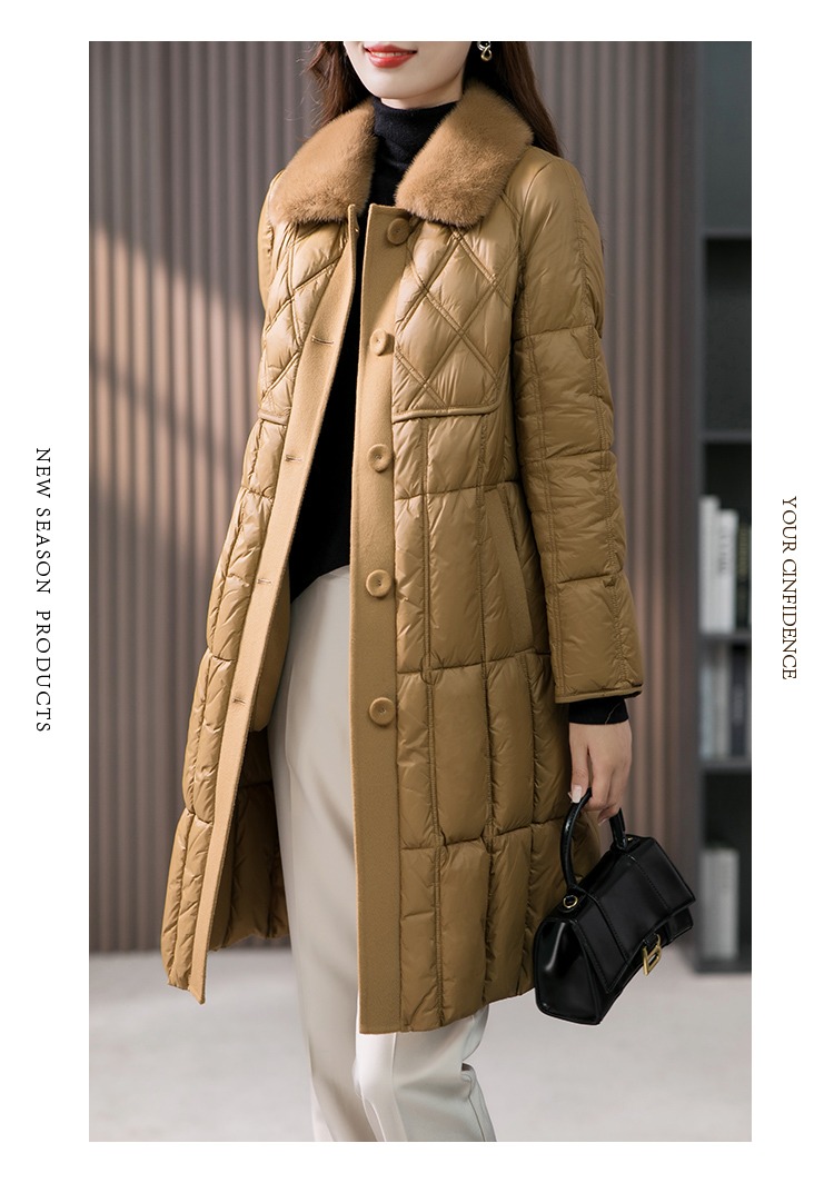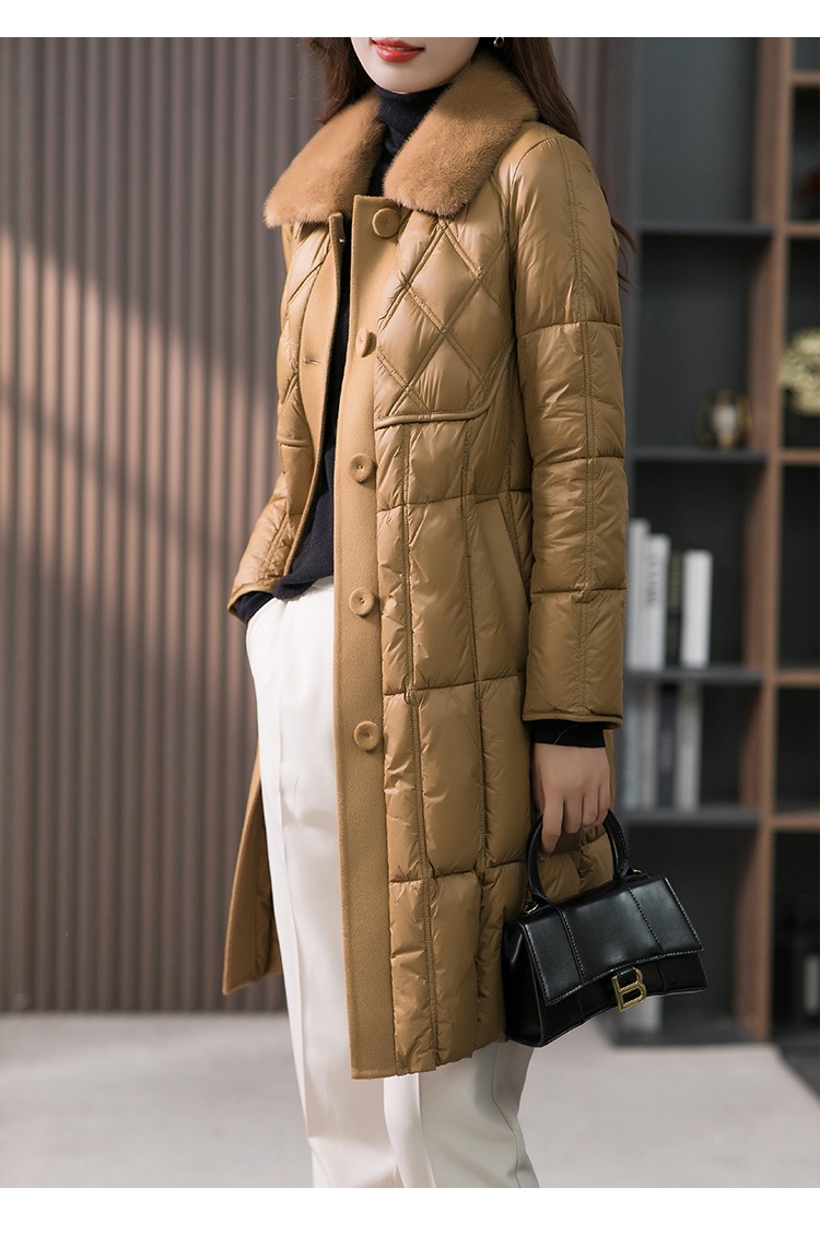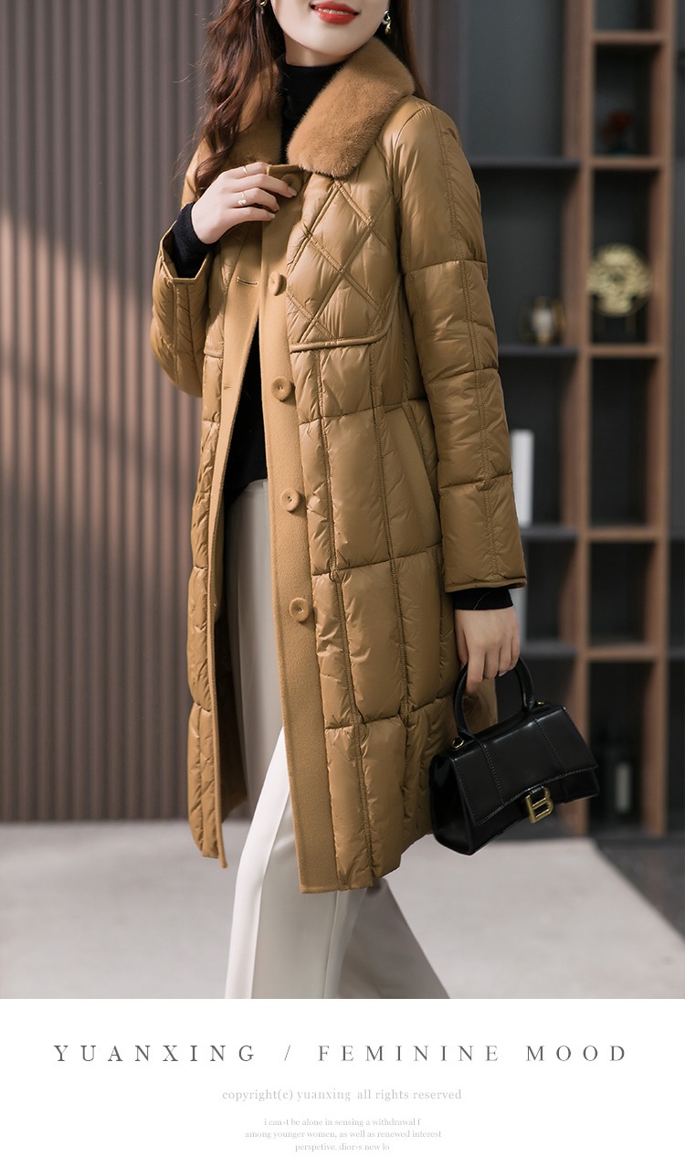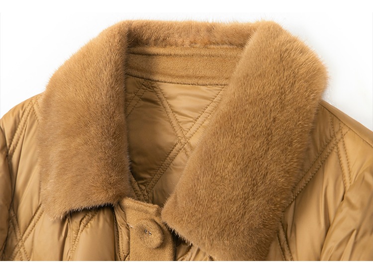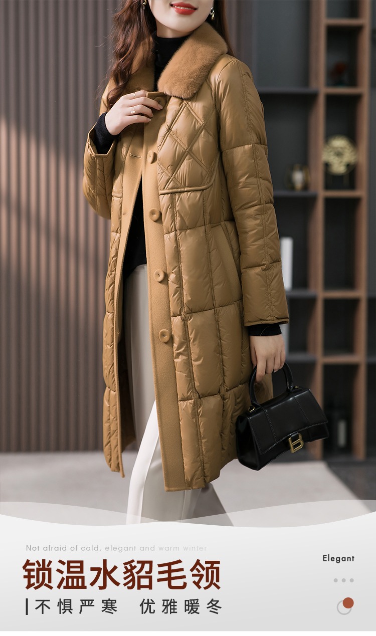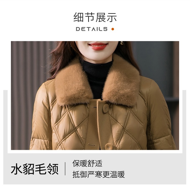 原形水貂毛领拼接鹅绒羽绒服女2023冬季新款韩版显瘦高端保暖外套