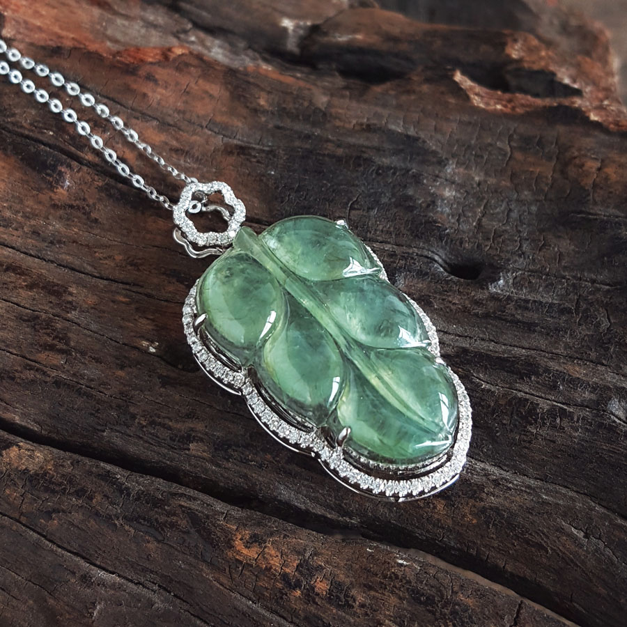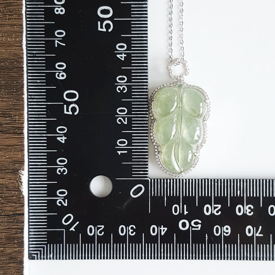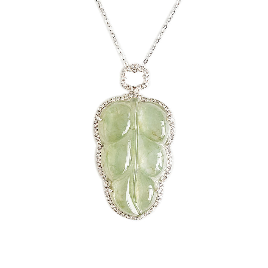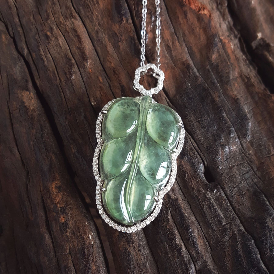 名称 | AU750白金镶钻镶天然细腻冰种叶子(金枝玉叶)翡翠吊坠项链 |