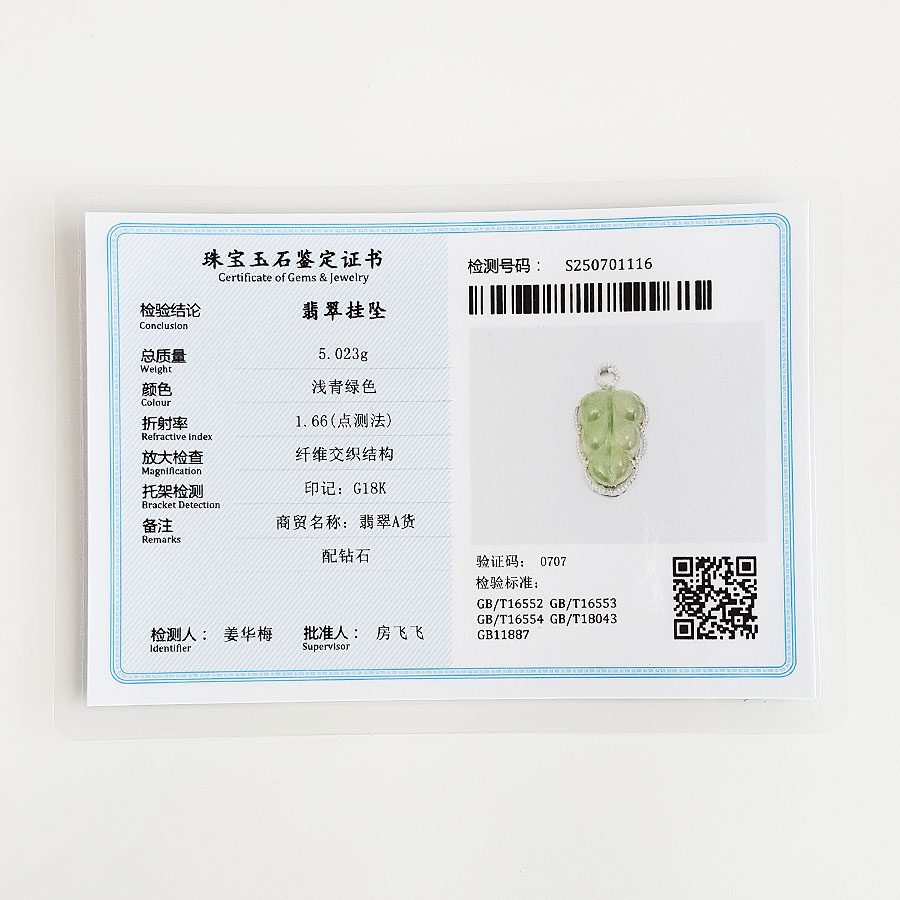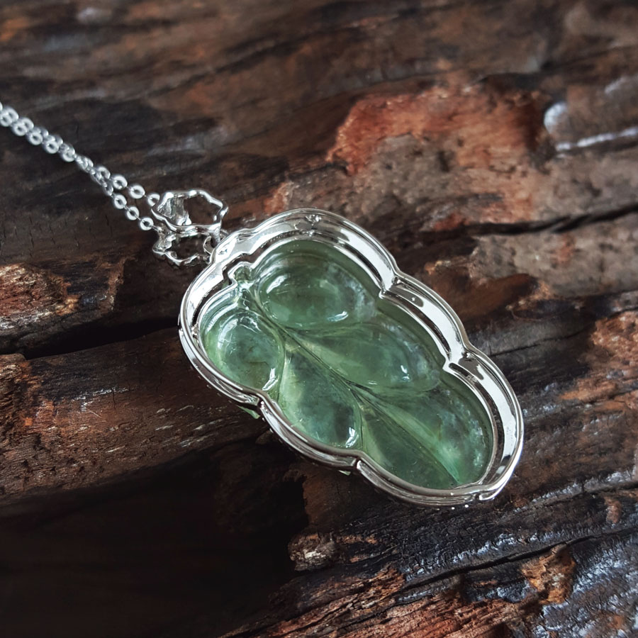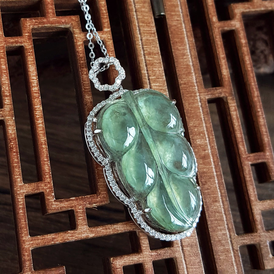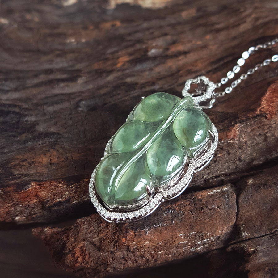 名称 | AU750白金镶钻镶天然细腻冰种叶子(金枝玉叶)翡翠吊坠项链 |