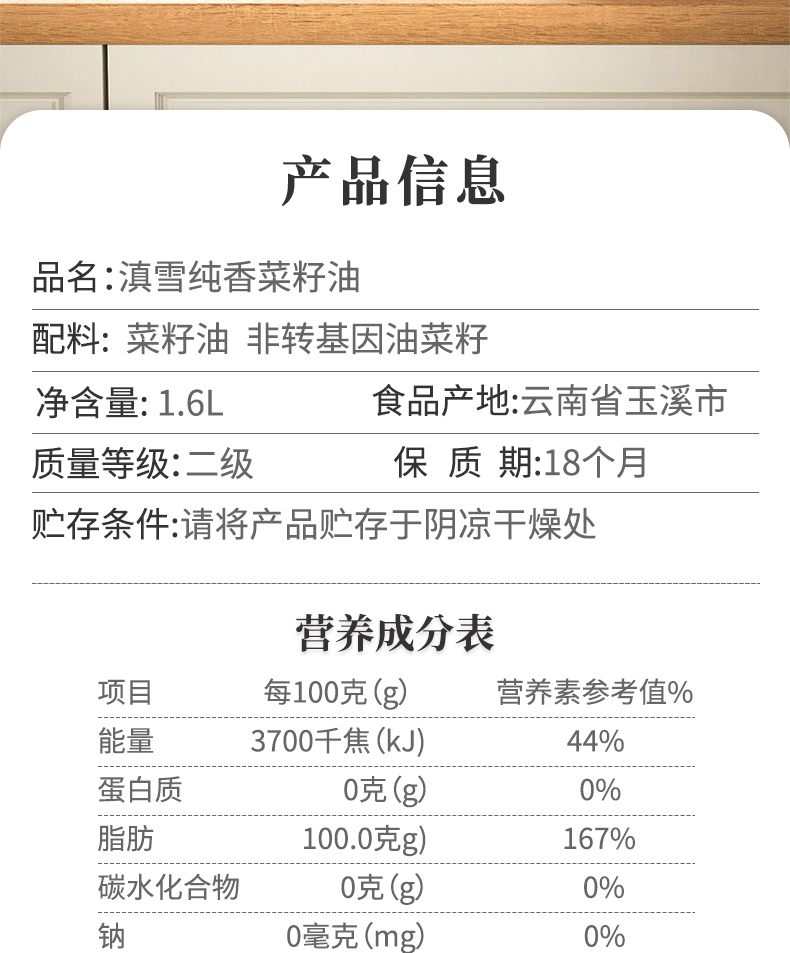 滇雪纯香菜籽油1.6L【仅云南省内发货】【线下集采,不发快递】