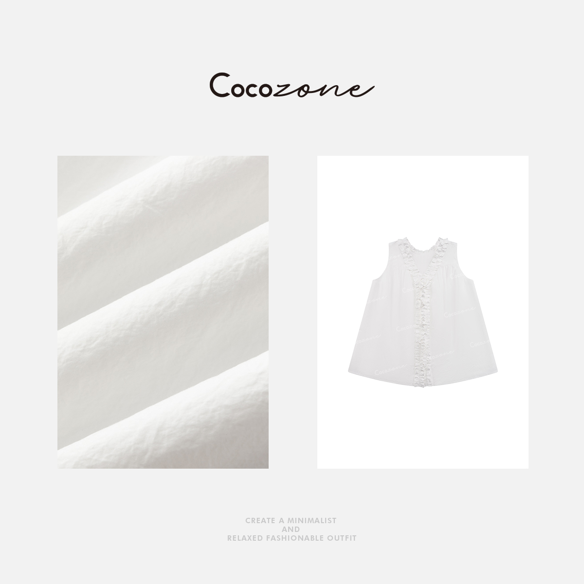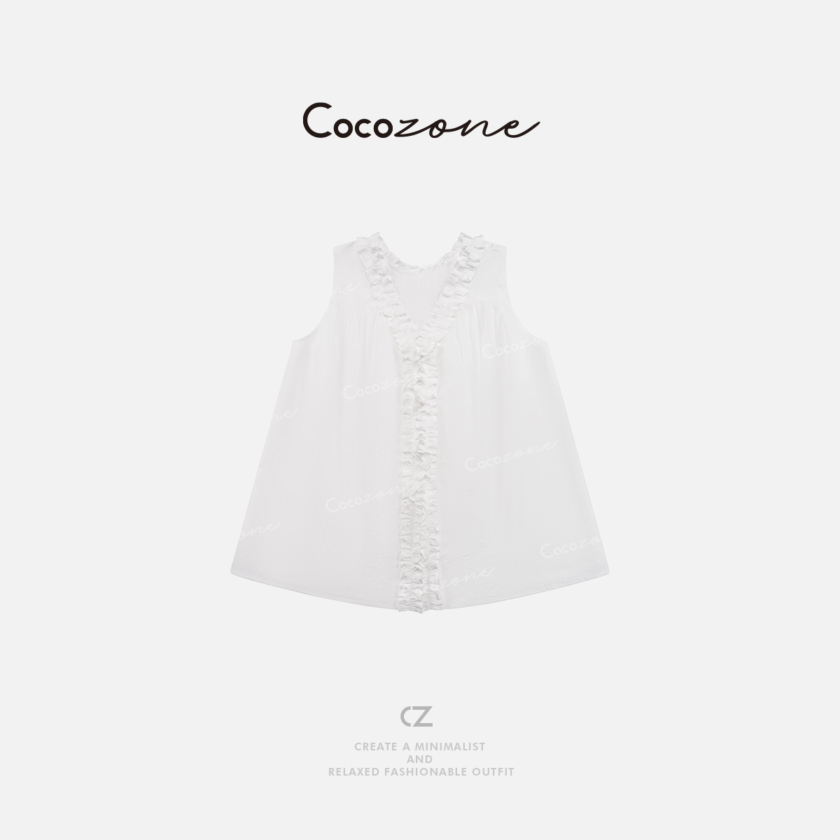 COCO ZONE 刘一一 【100棉】小众花边V领别致马甲CD2A0737
