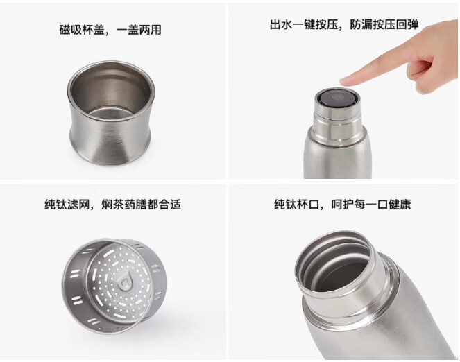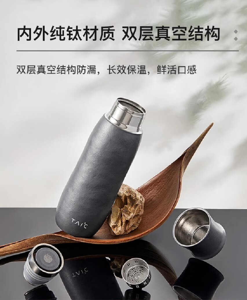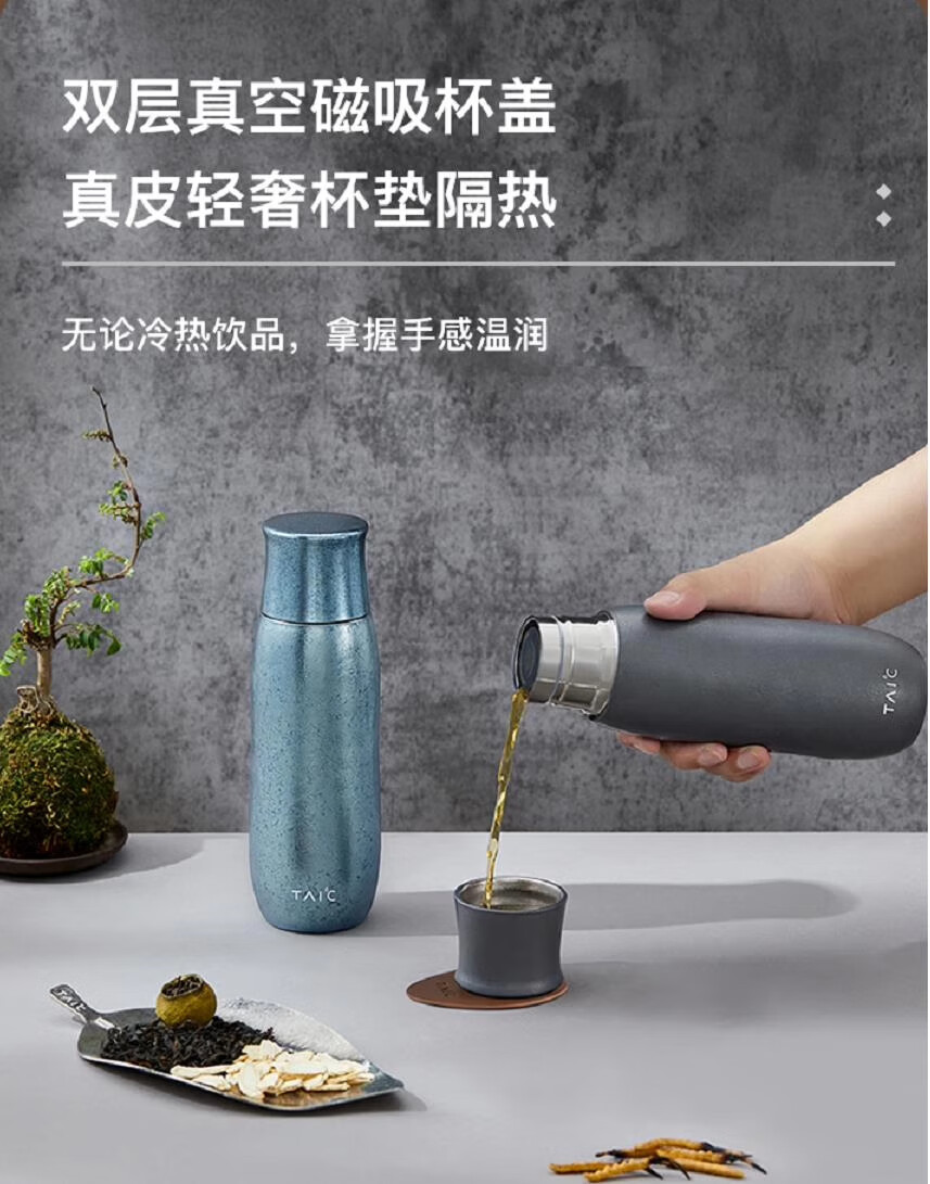 TAIC太可纯钛臻享焖茶杯磁吸盖子双层保温杯子大容量按压出水水杯