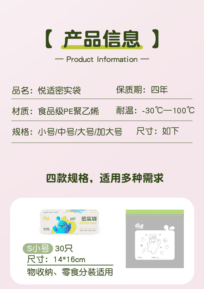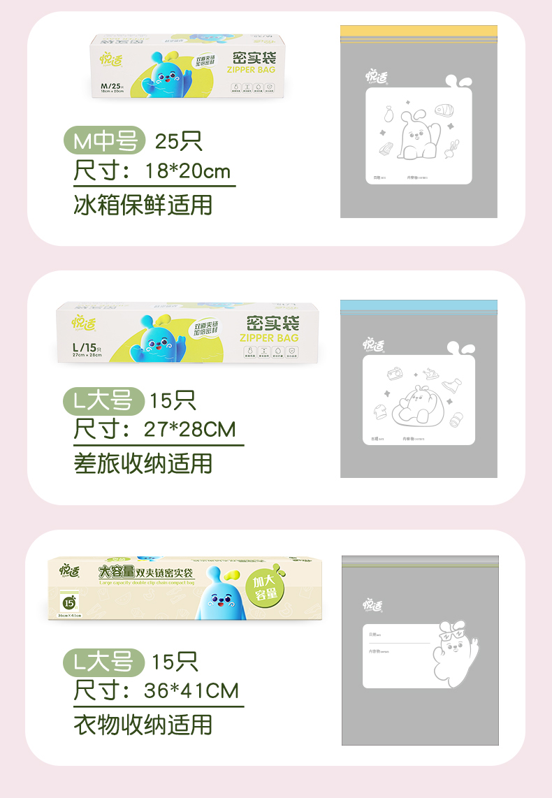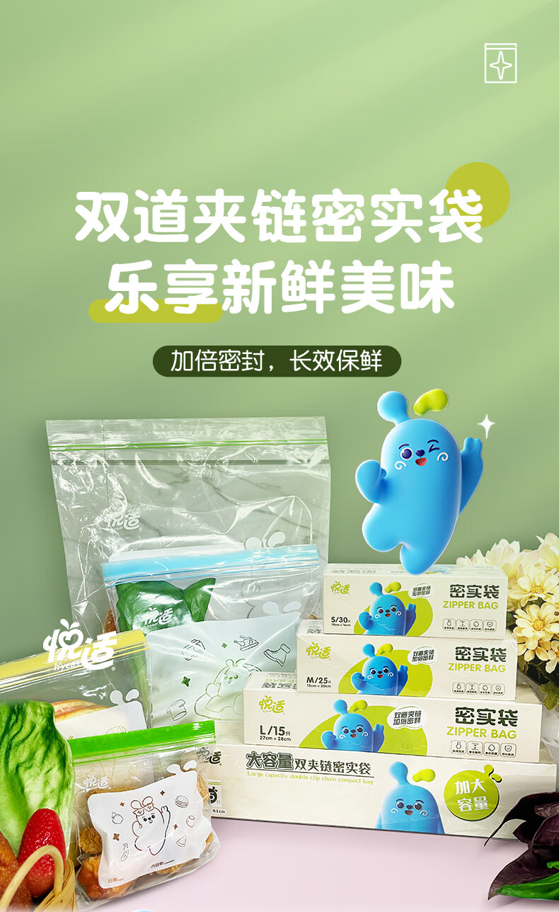 悦适双夹链密实袋四联装共85只