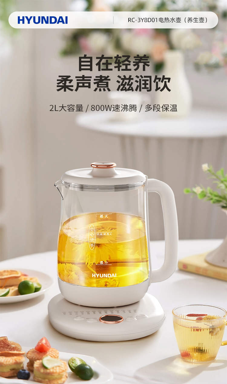 现代(HYUNDAI)RC-3Y8D01电热水壶2L(单位:台)白色