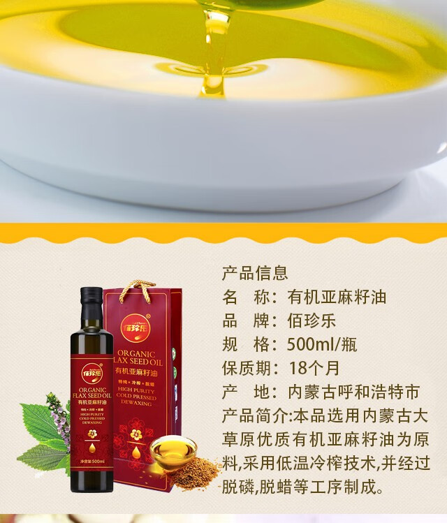 佰珍乐-有机亚麻籽油500ml