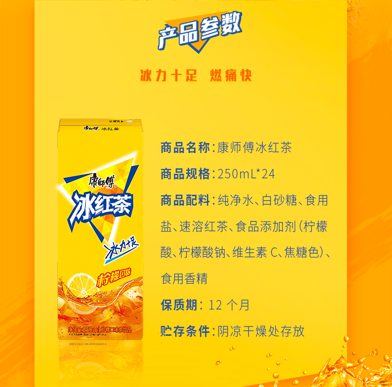 康师傅 冰红茶(柠檬口味茶饮料)250ml冰镇饮料