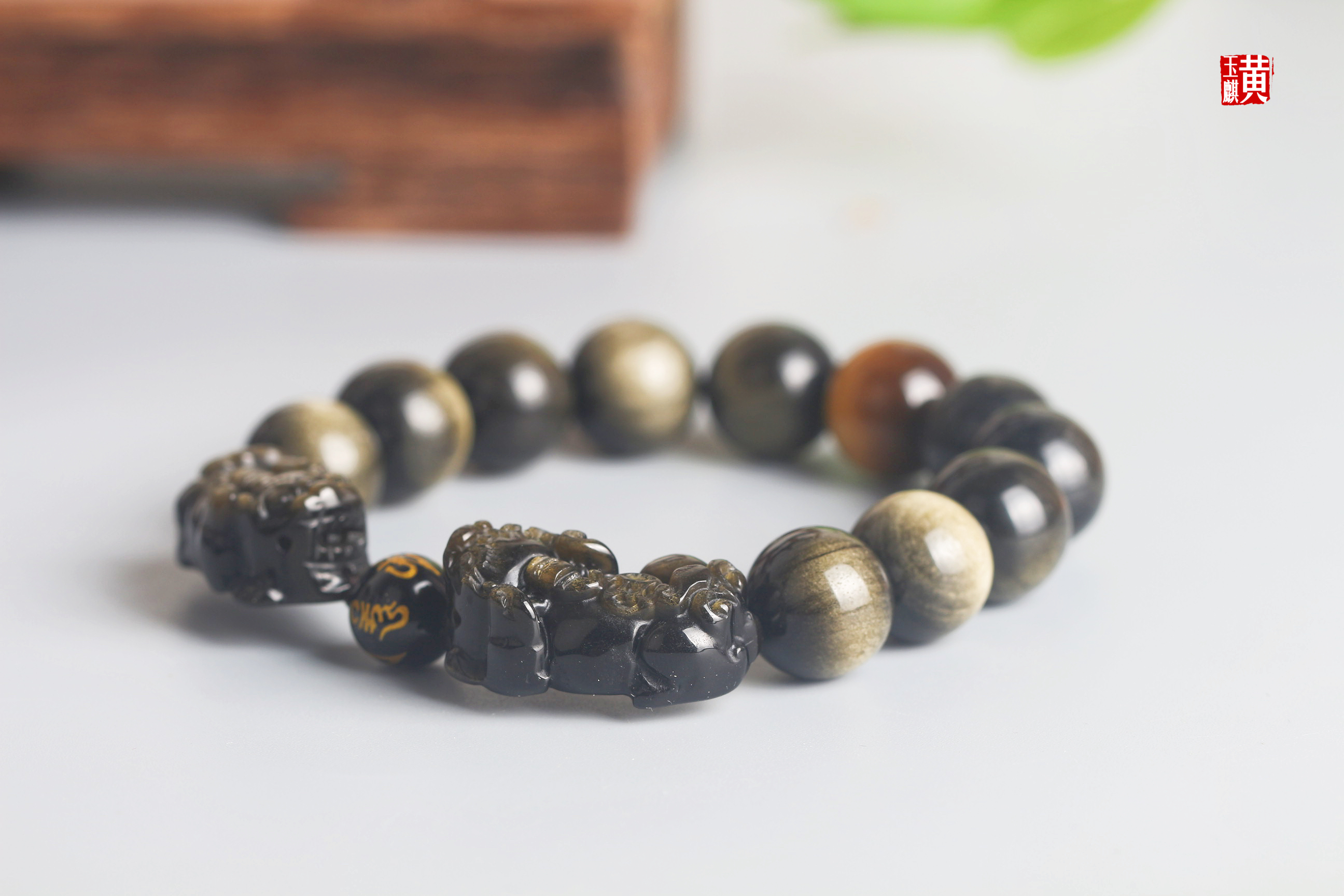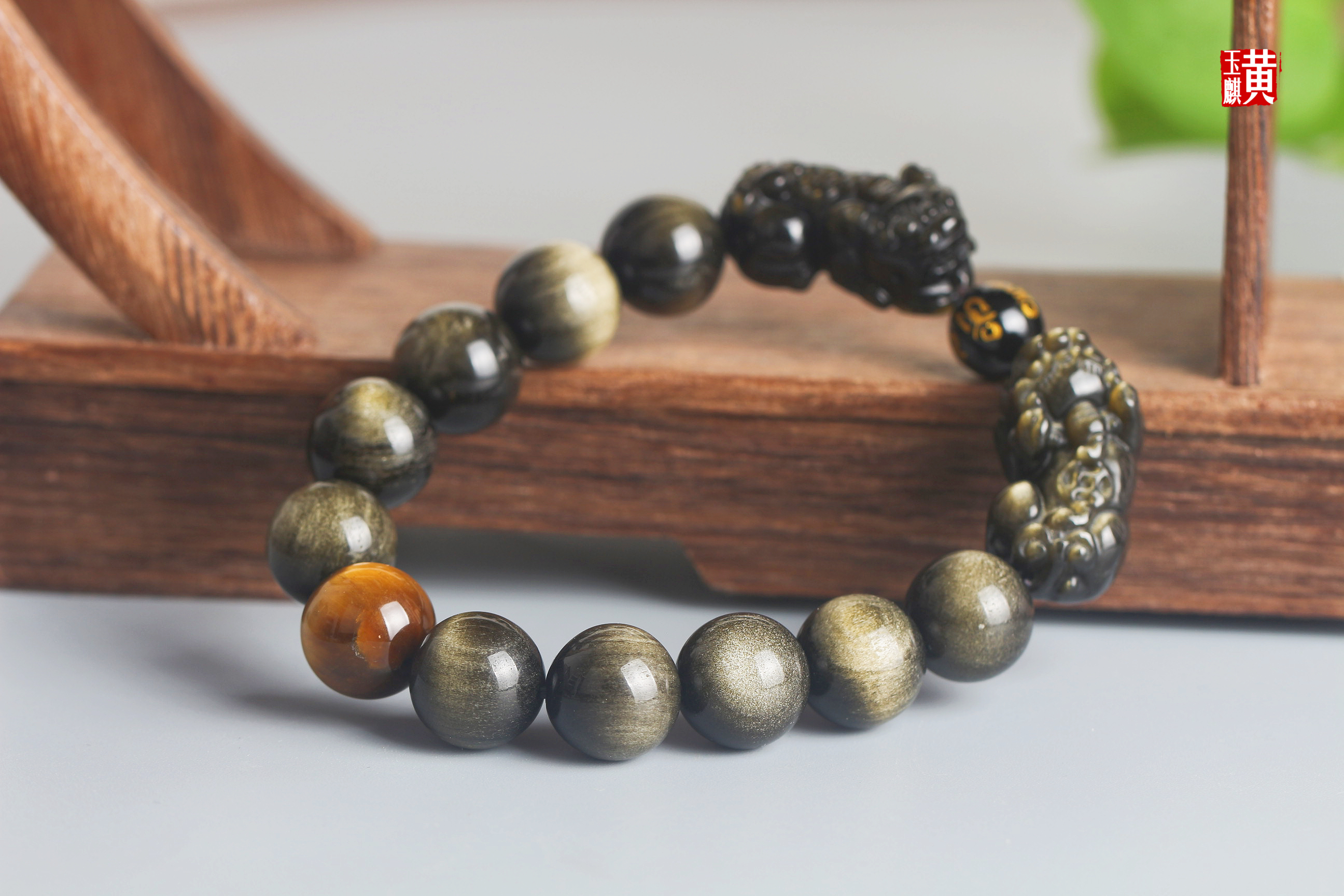 【招财聚财】双金眼金曜石双貔貅手串