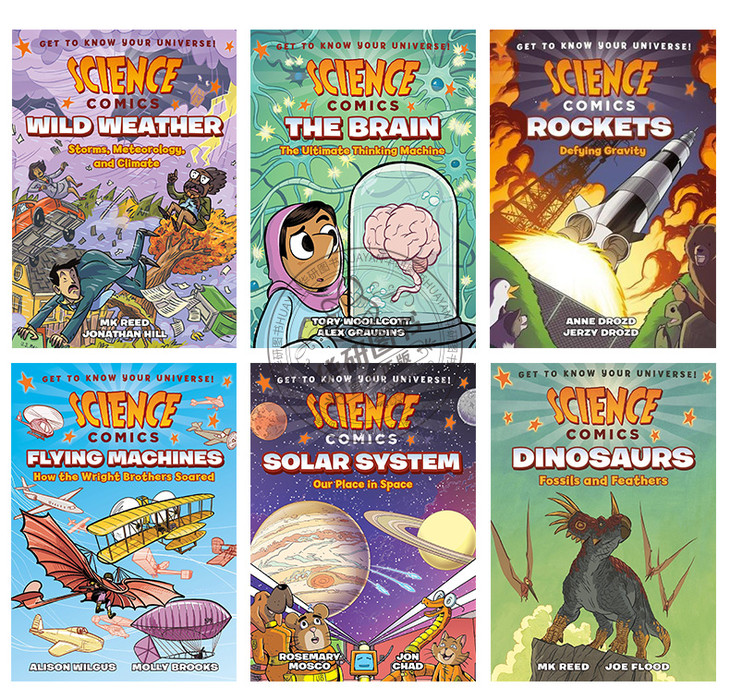 Science Comics 科学漫画系列6册套装 英文原版 恐龙 飞行器 火箭 太阳系 天气 大脑 青少年读物 进口原版英语故事书 全英文版