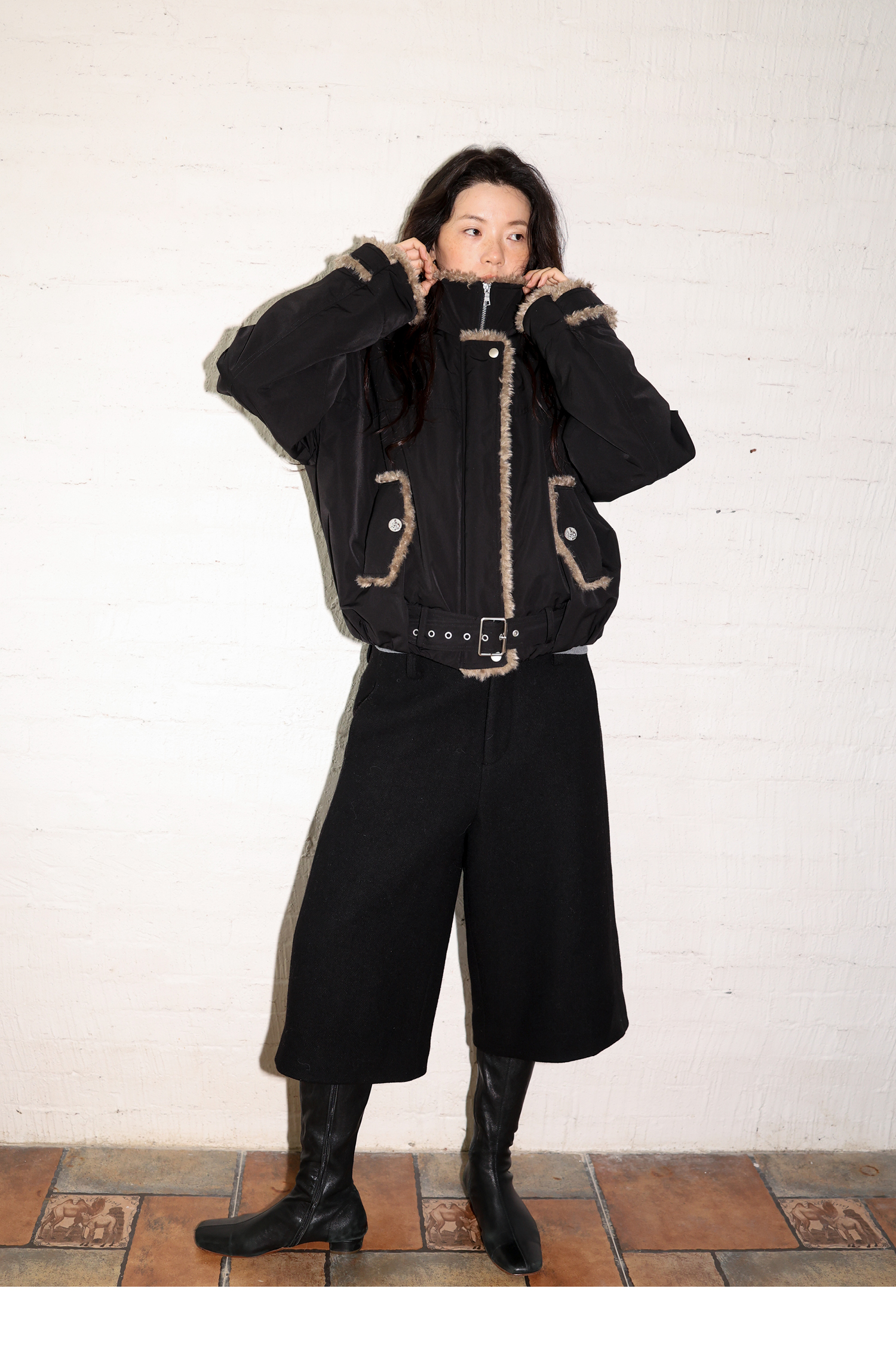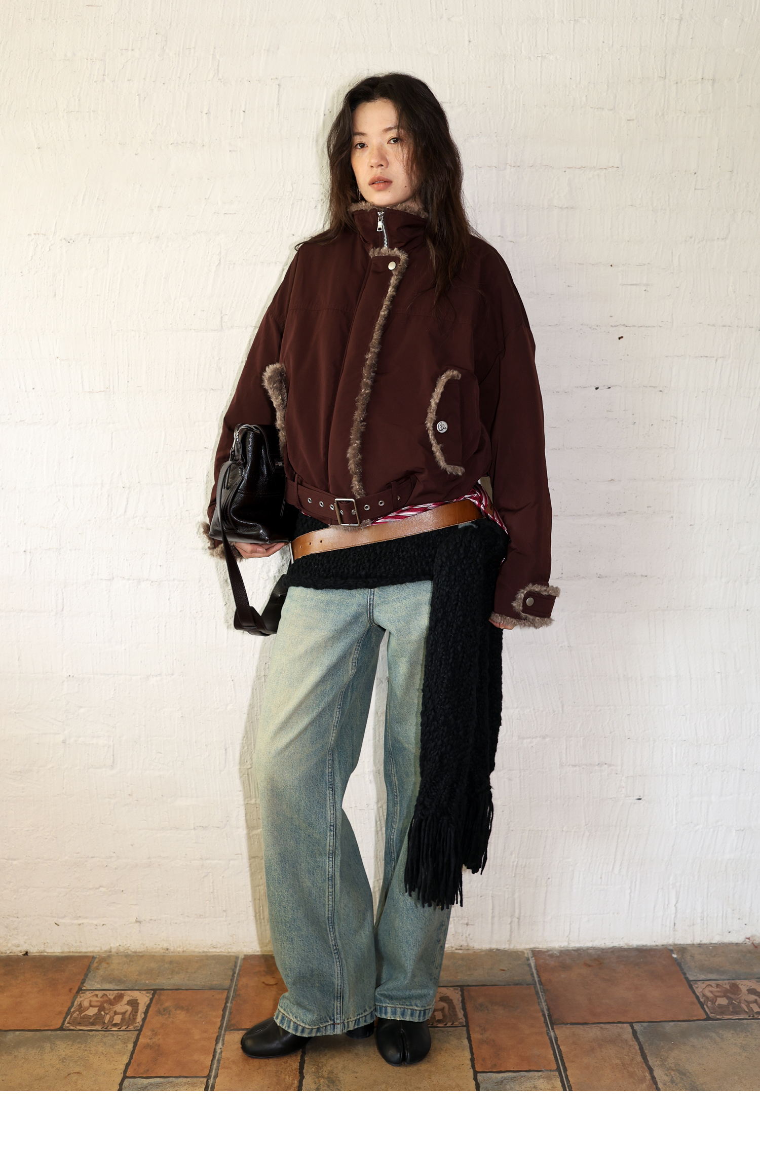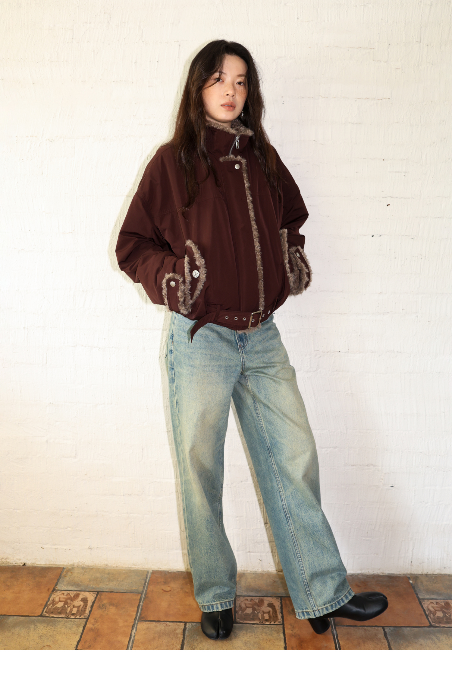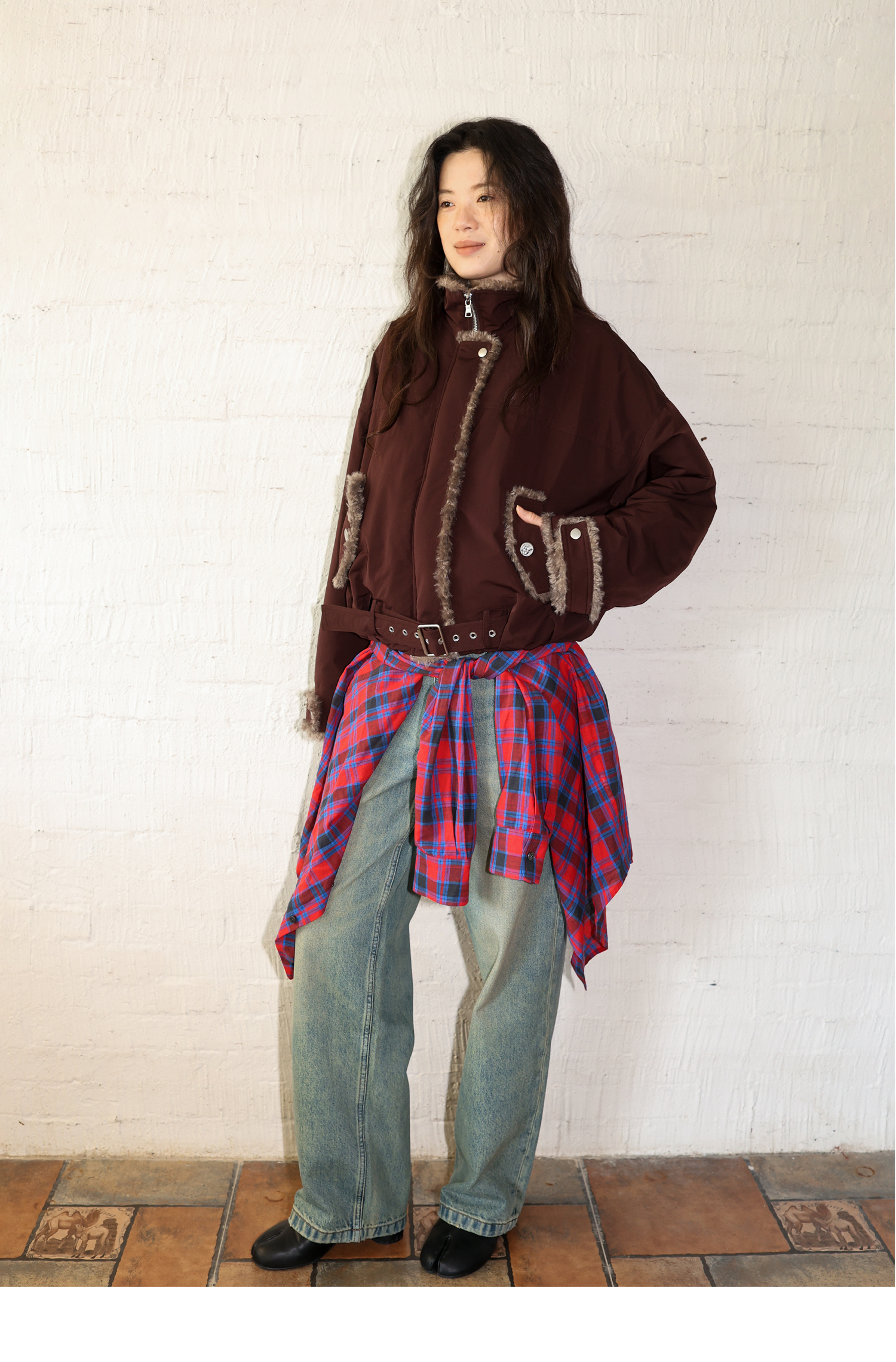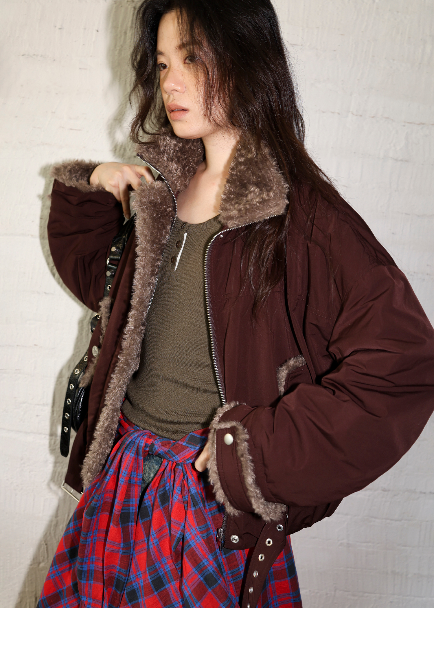 素舶 复古工装立领短款毛毛内里保暖游牧夹克外套棉服