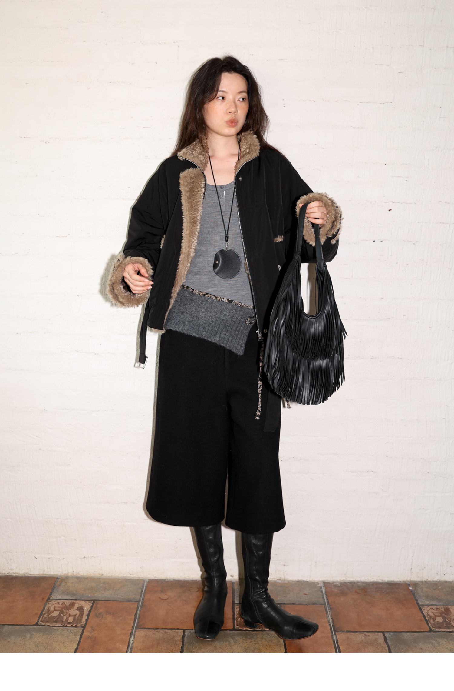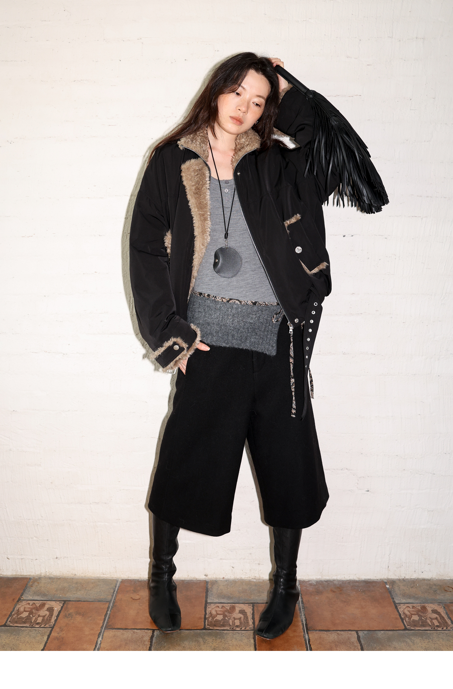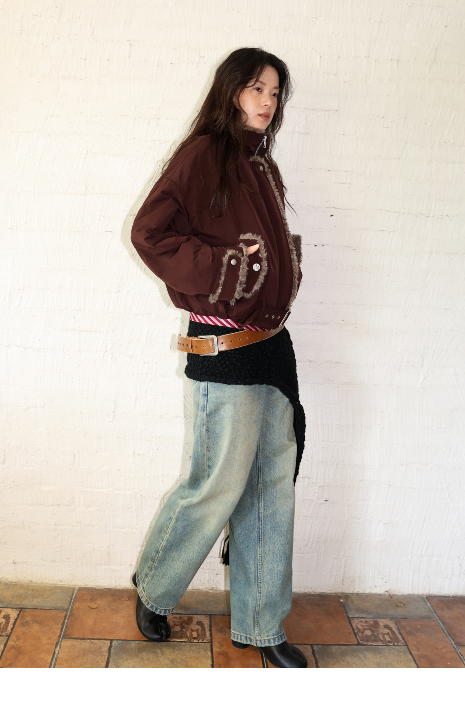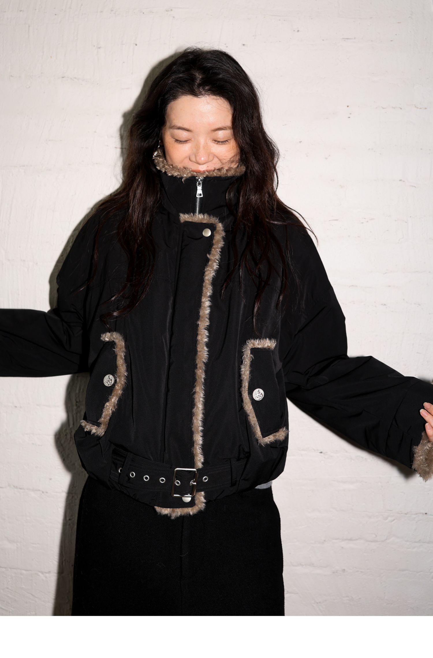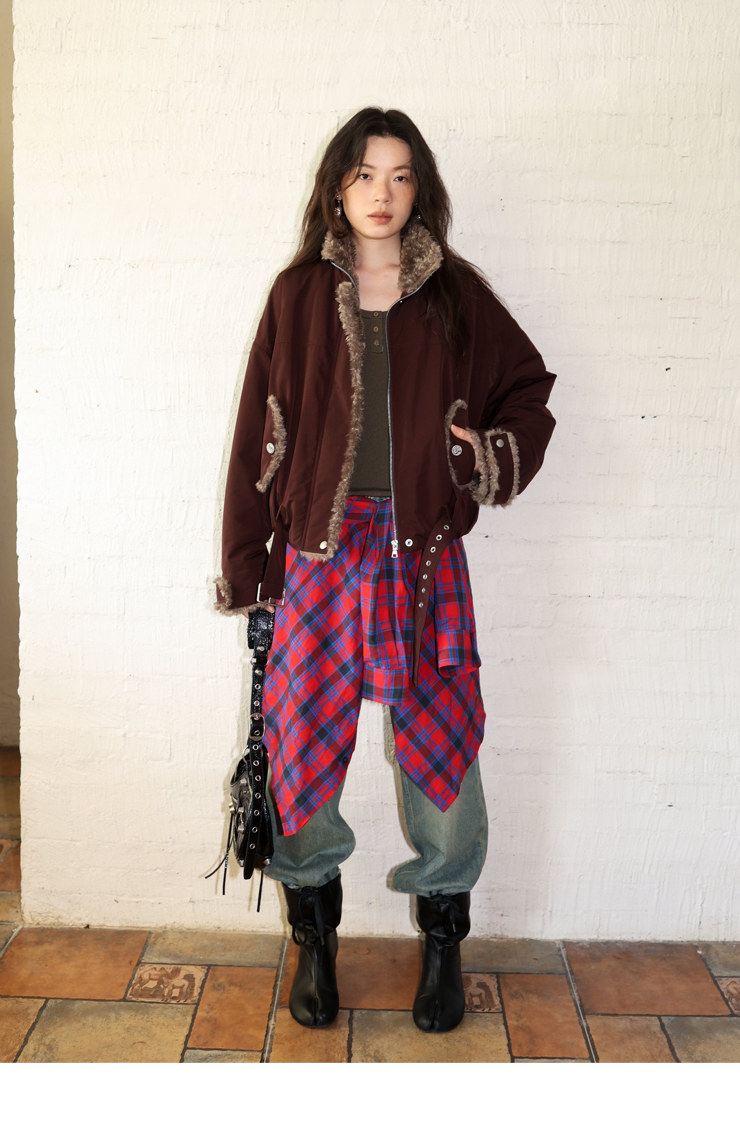 素舶 复古工装立领短款毛毛内里保暖游牧夹克外套棉服