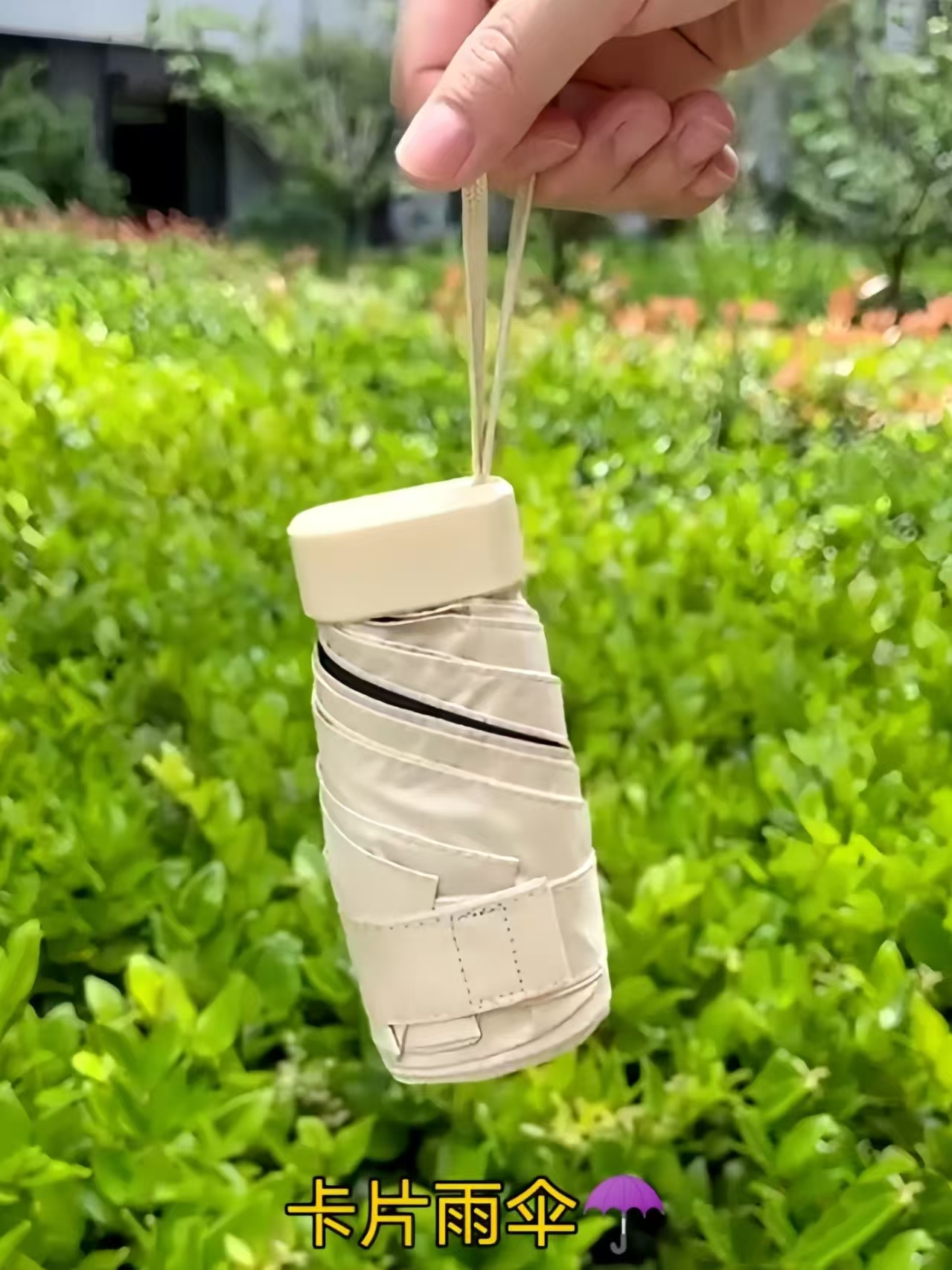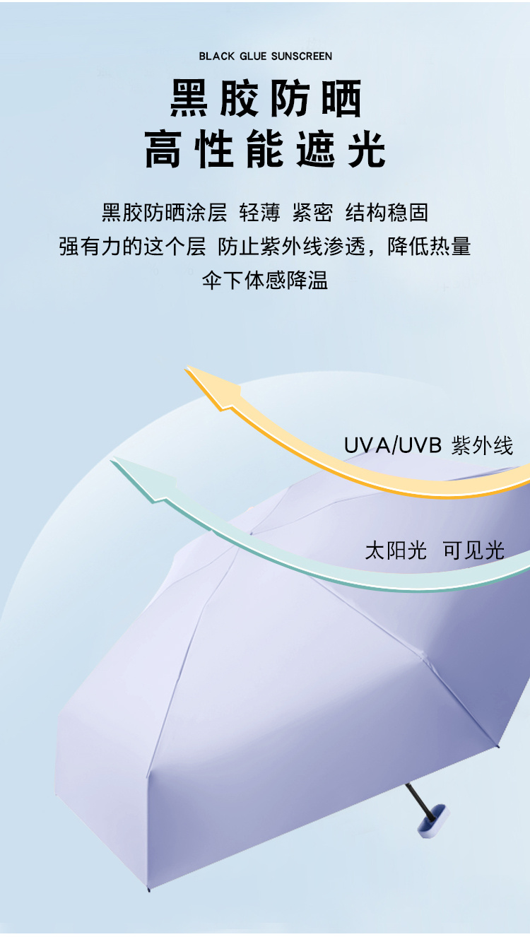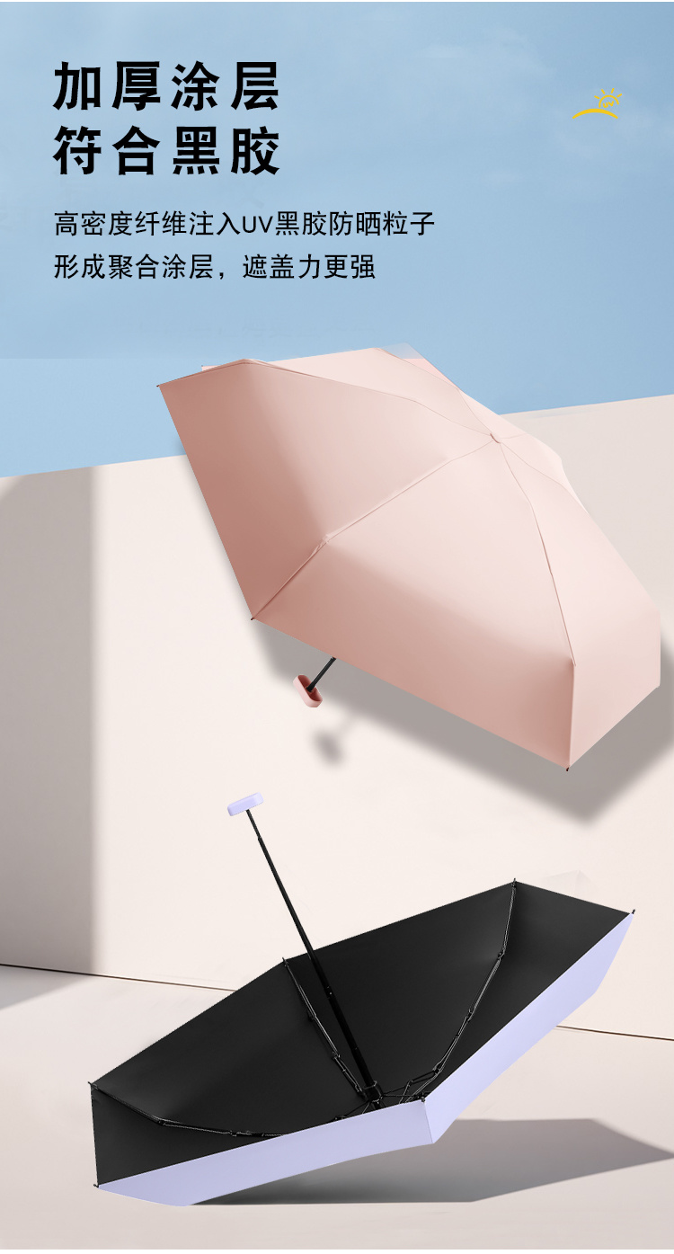 【云蔓扁六折卡片太阳伞】小巧方便,真正的物理防晒!UPF50+ 迷你便携,手机大小!晴雨两用 超轻&超小"能揣兜里的防晒口袋伞伞 黑胶晴天高防晒值UPF50+@伞下降温6- 10℃