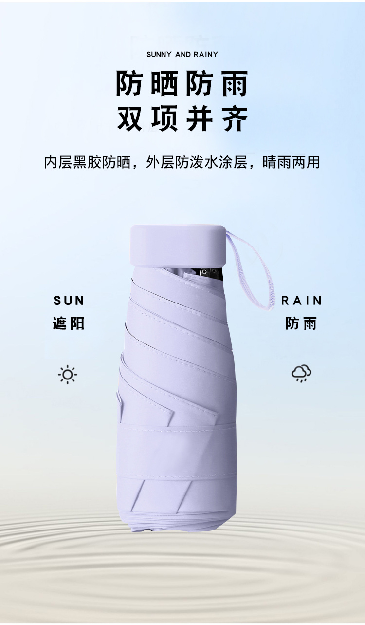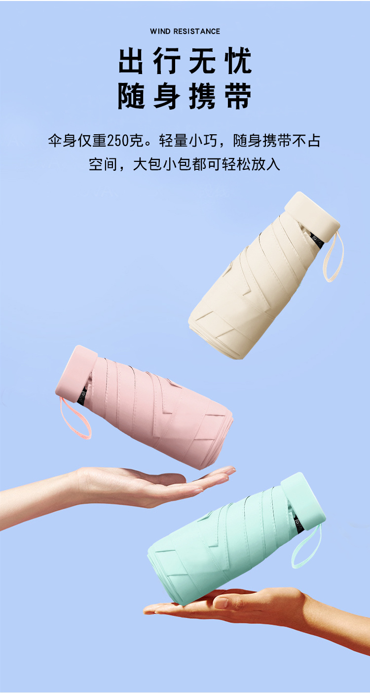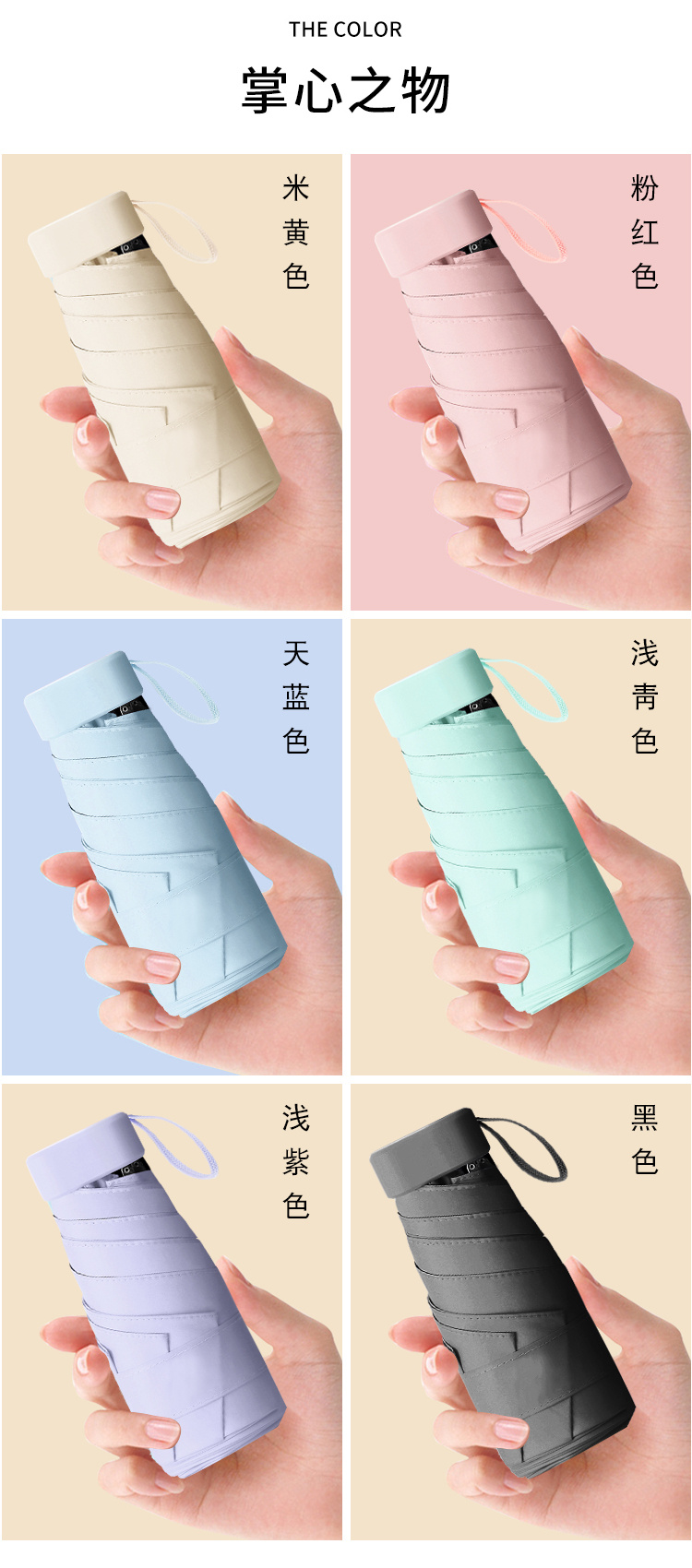 【云蔓扁六折卡片太阳伞】小巧方便,真正的物理防晒!UPF50+ 迷你便携,手机大小!晴雨两用 超轻&超小"能揣兜里的防晒口袋伞伞 黑胶晴天高防晒值UPF50+@伞下降温6- 10℃