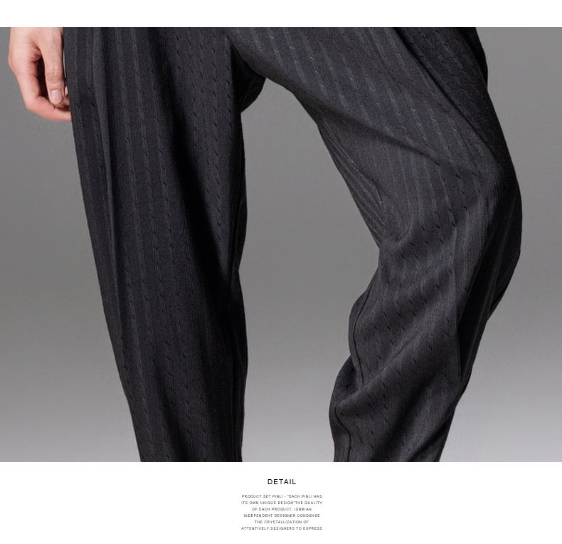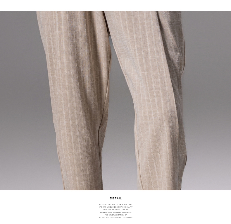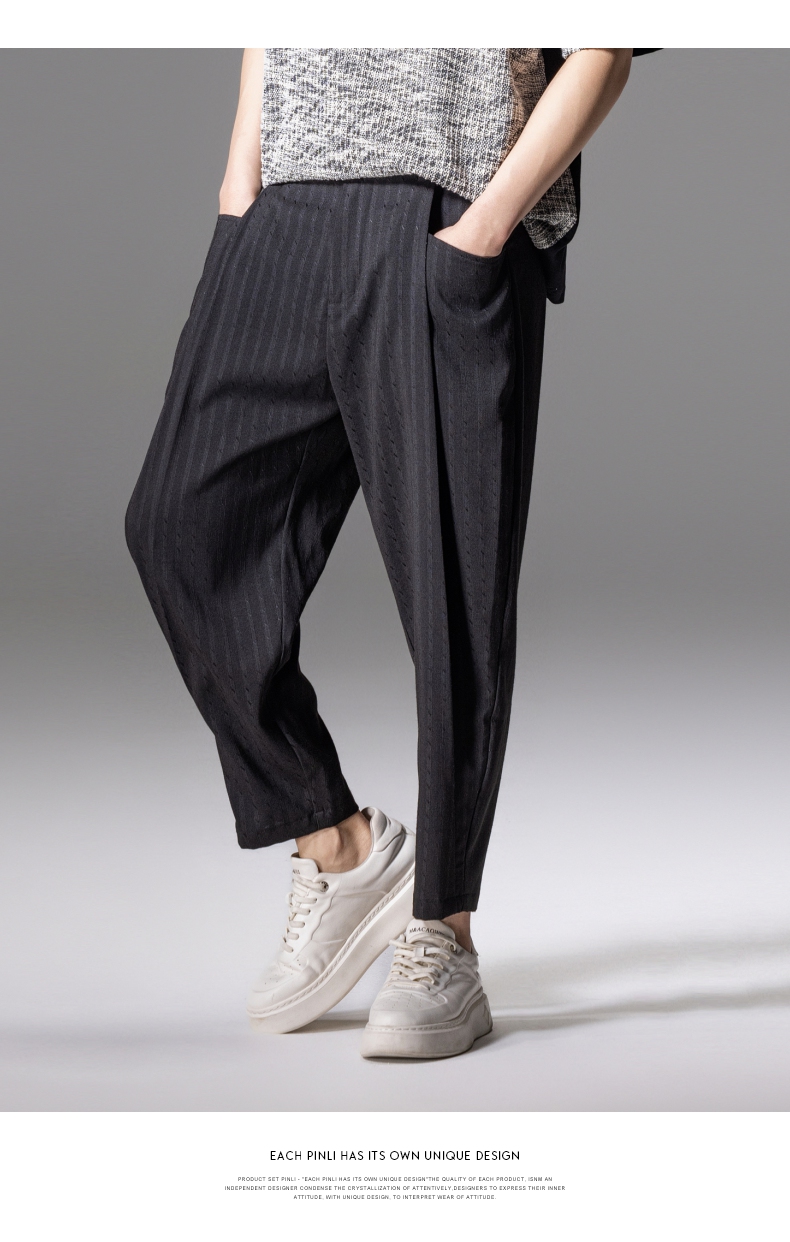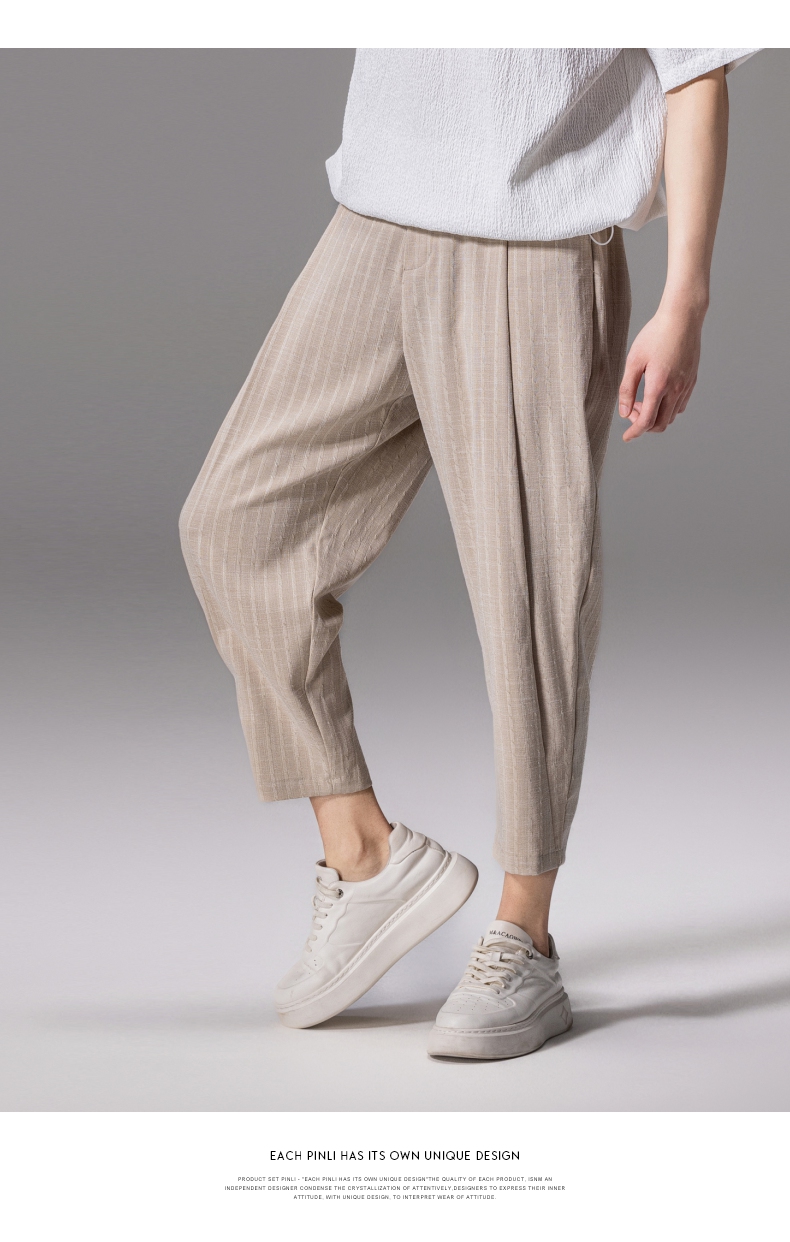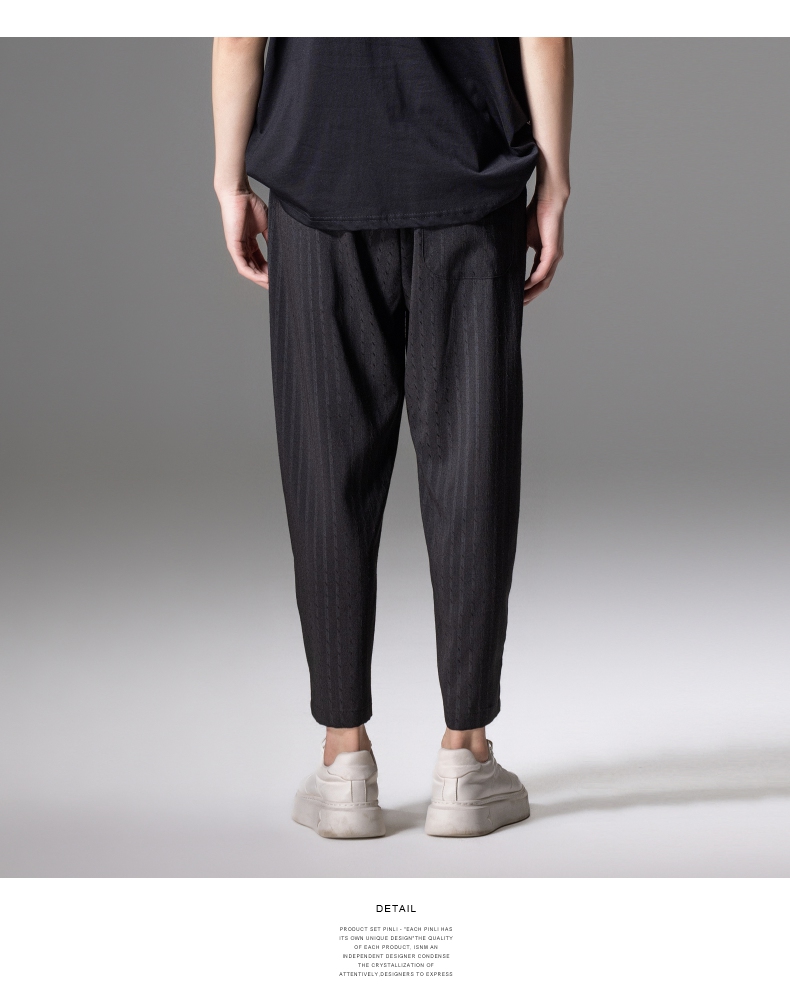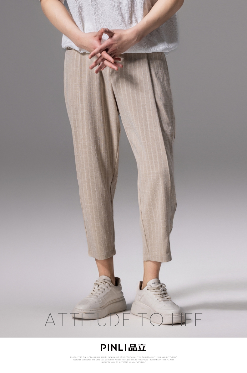 PINLI品立夏季新款竖条暗纹九分裤潮牌百搭直筒男条纹休闲裤B242117058
