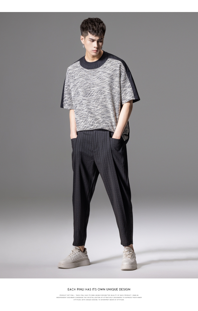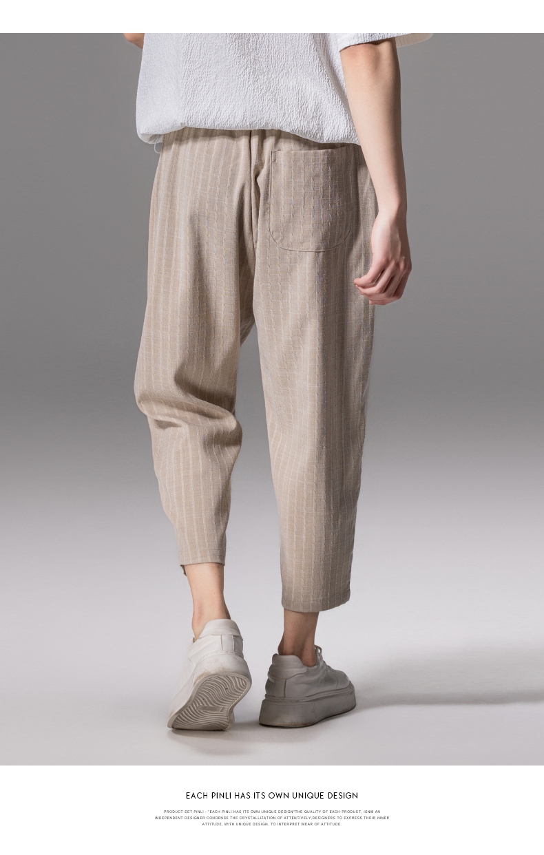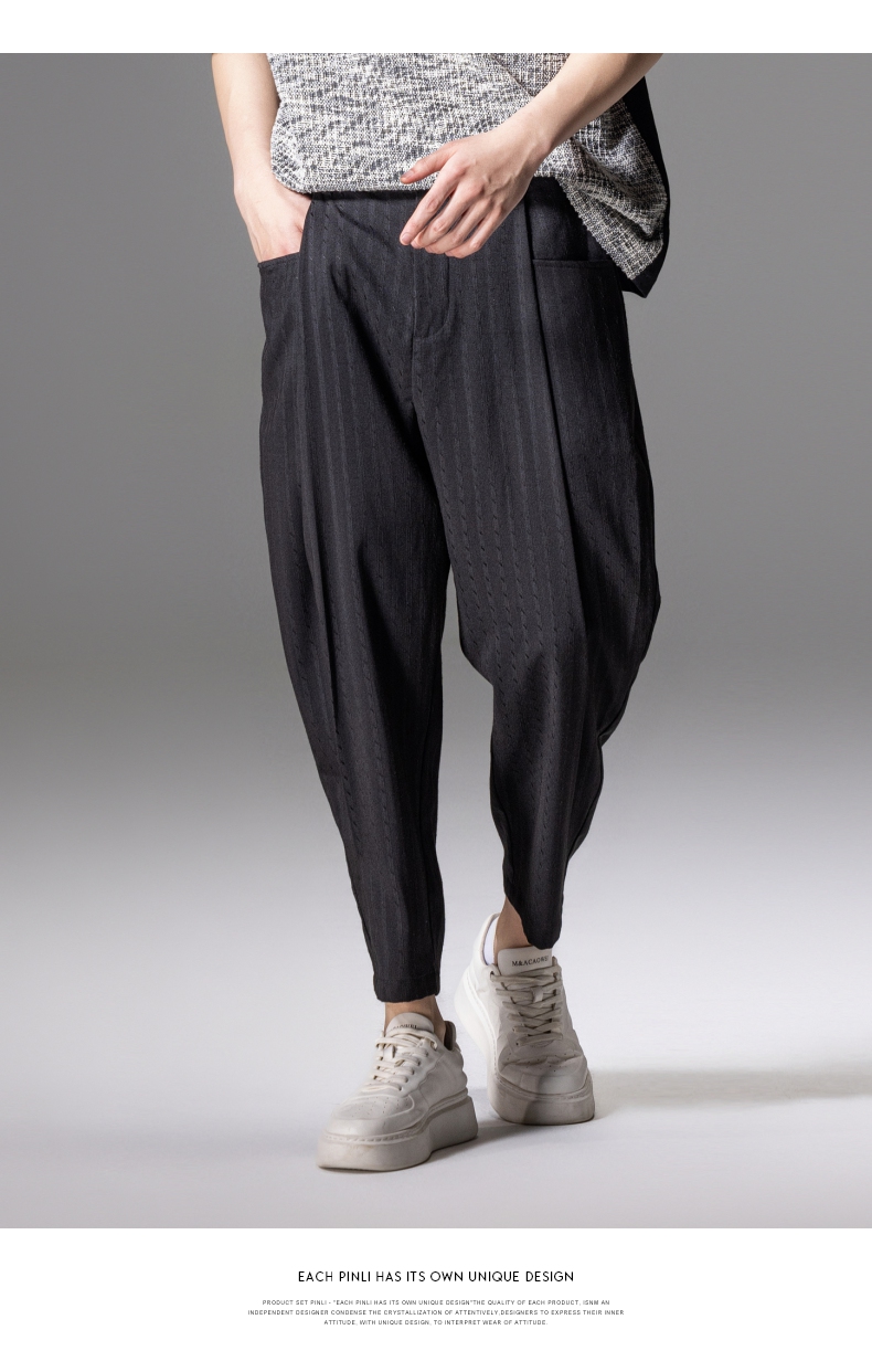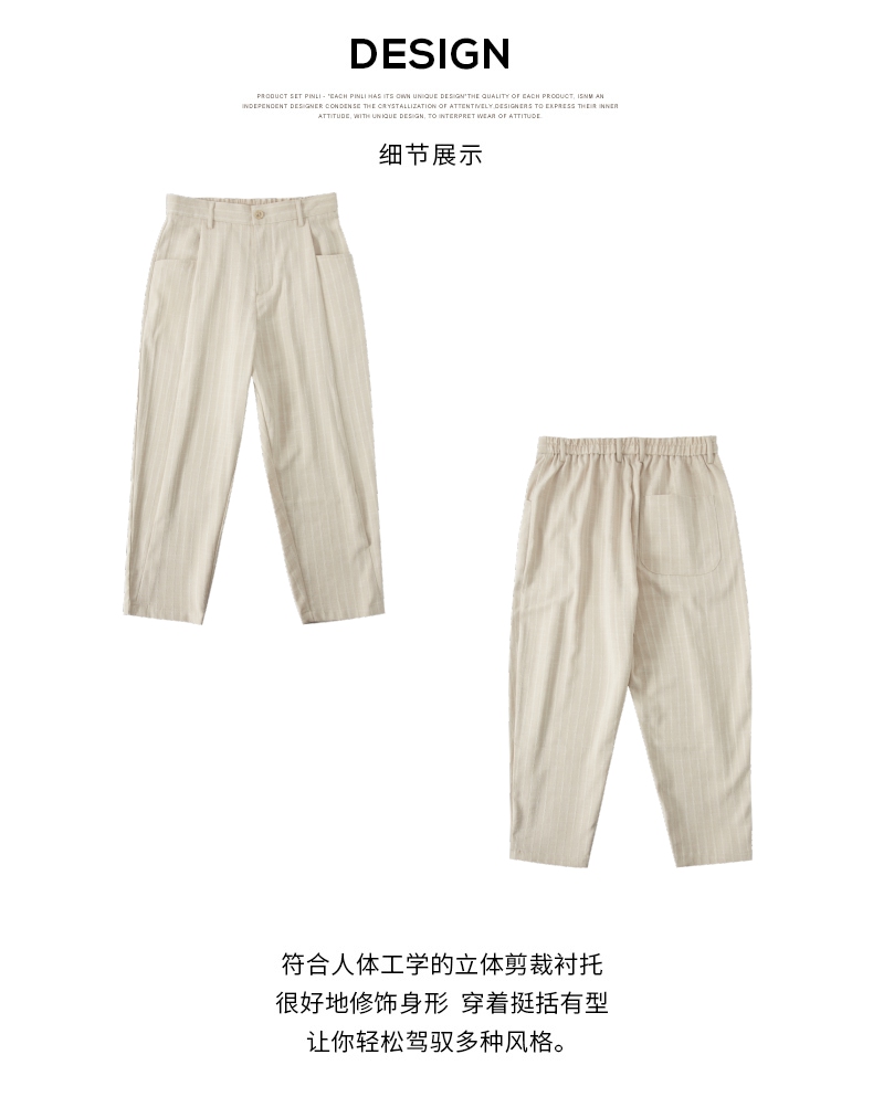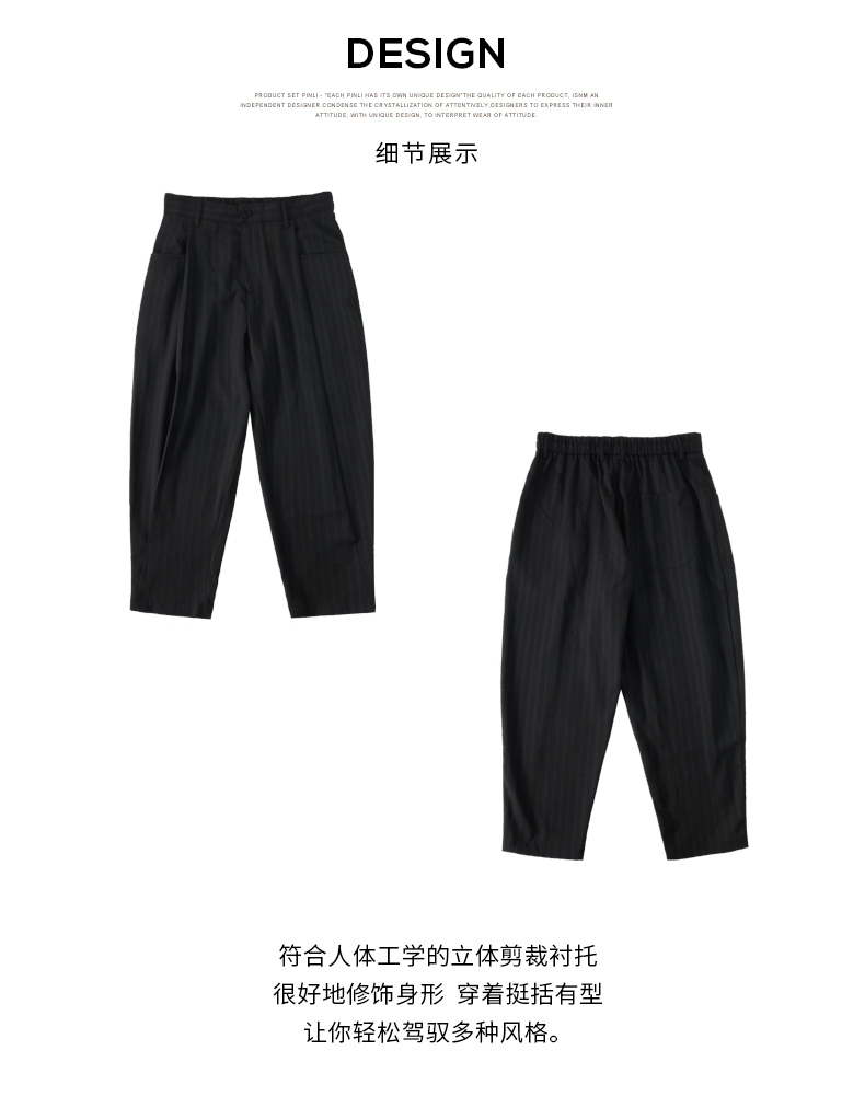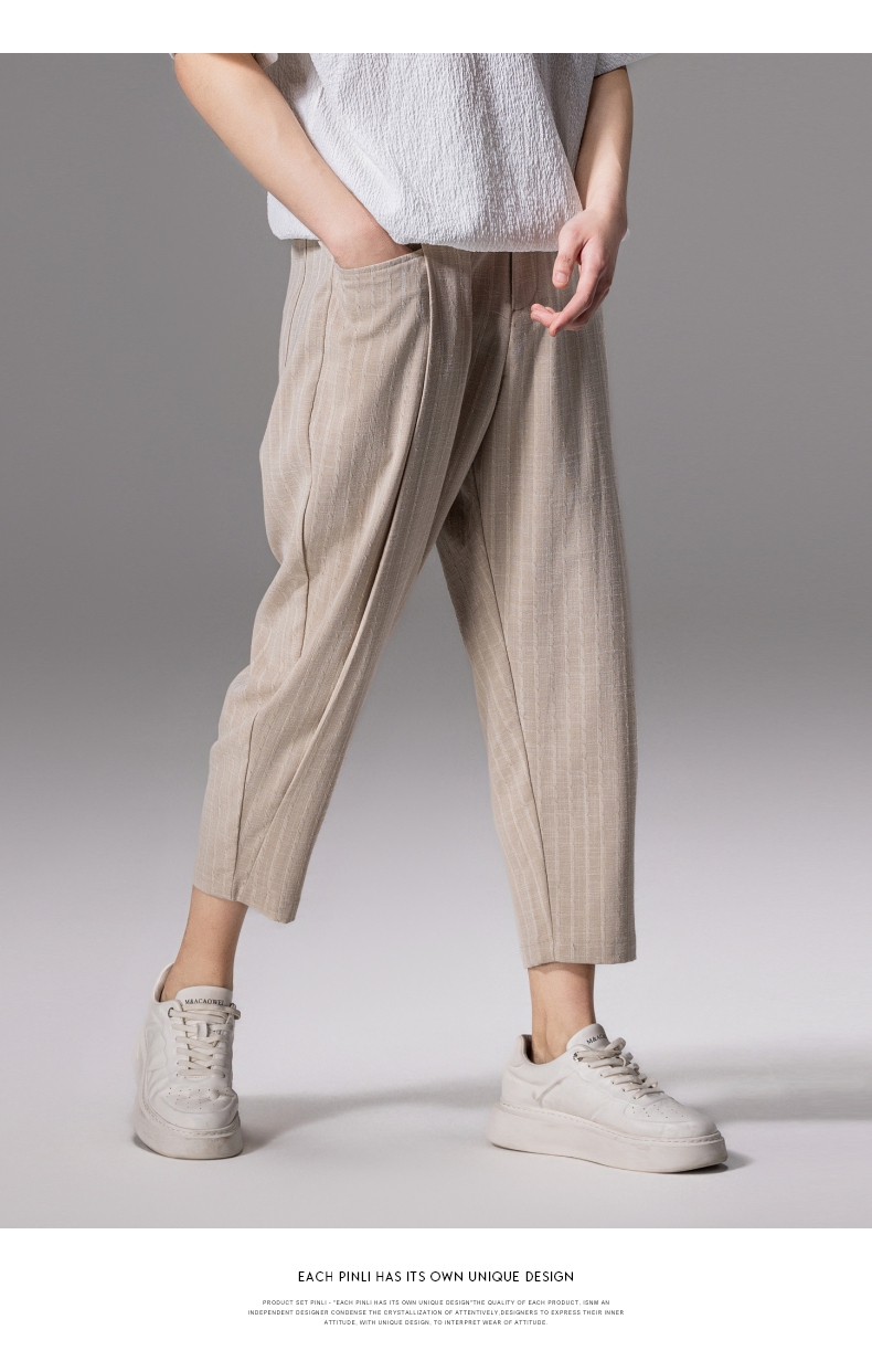PINLI品立夏季新款竖条暗纹九分裤潮牌百搭直筒男条纹休闲裤B242117058