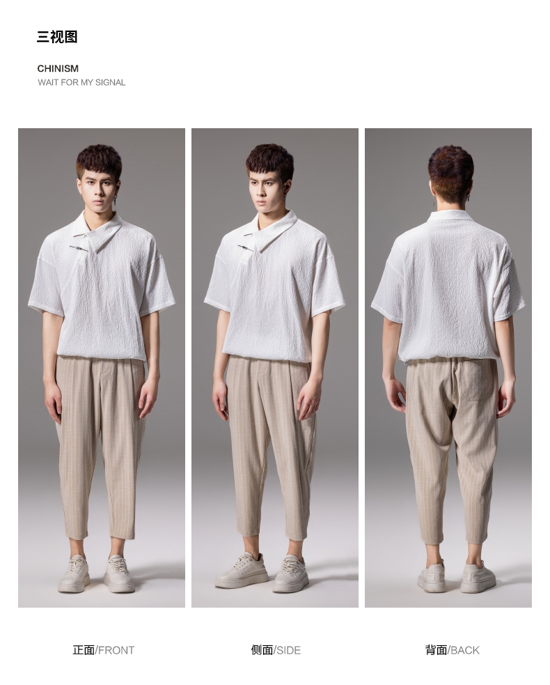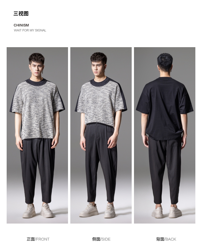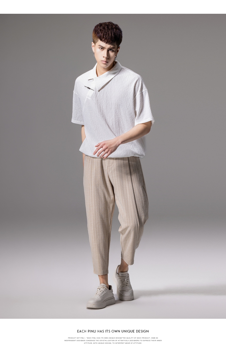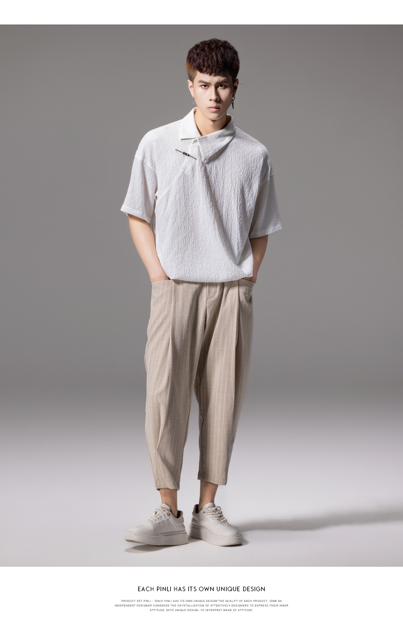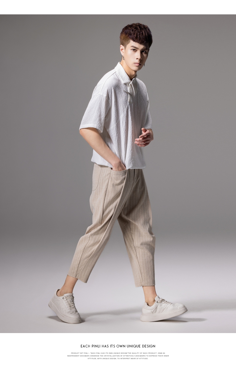 PINLI品立夏季新款竖条暗纹九分裤潮牌百搭直筒男条纹休闲裤B242117058