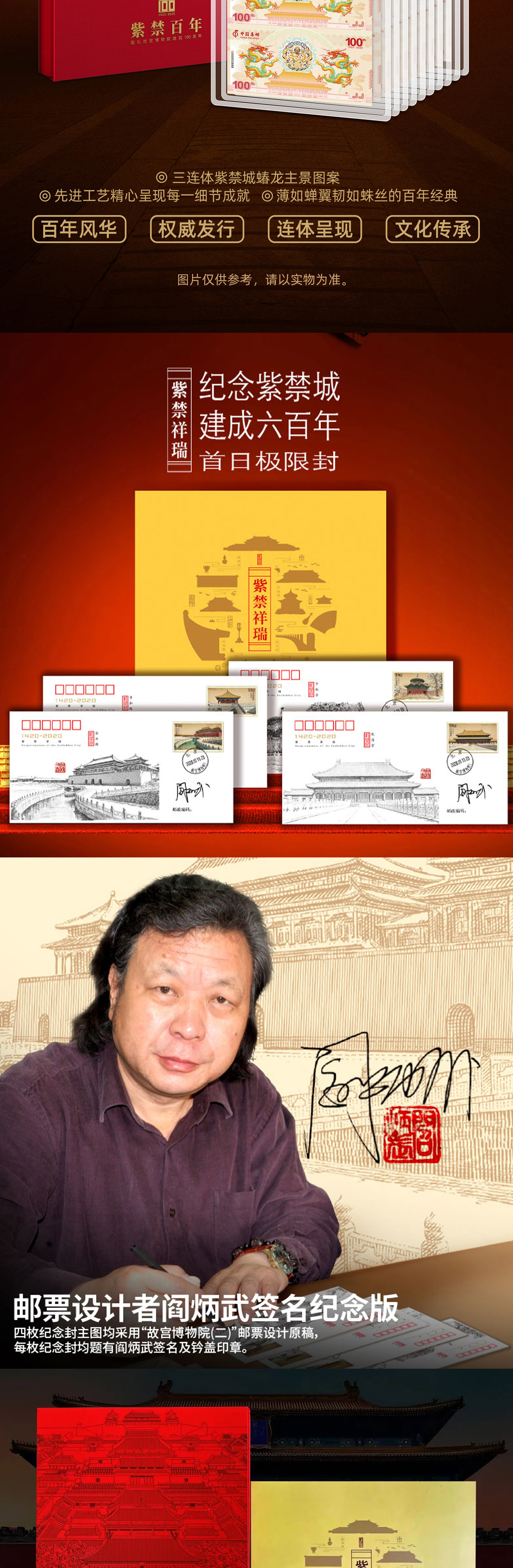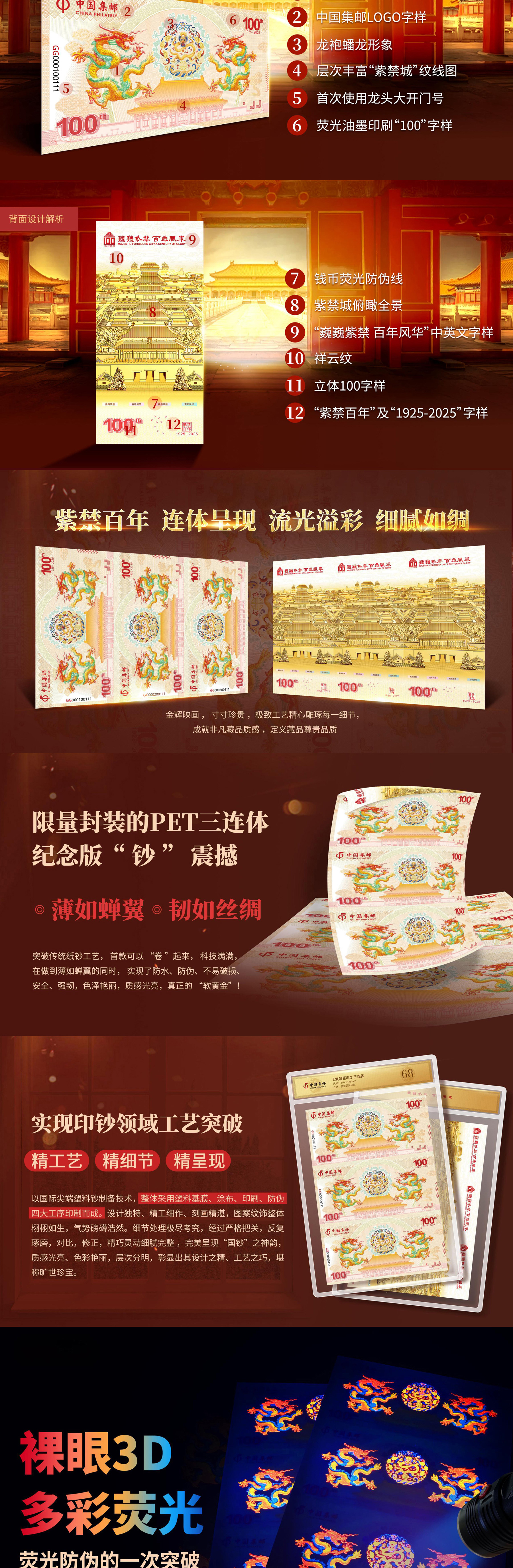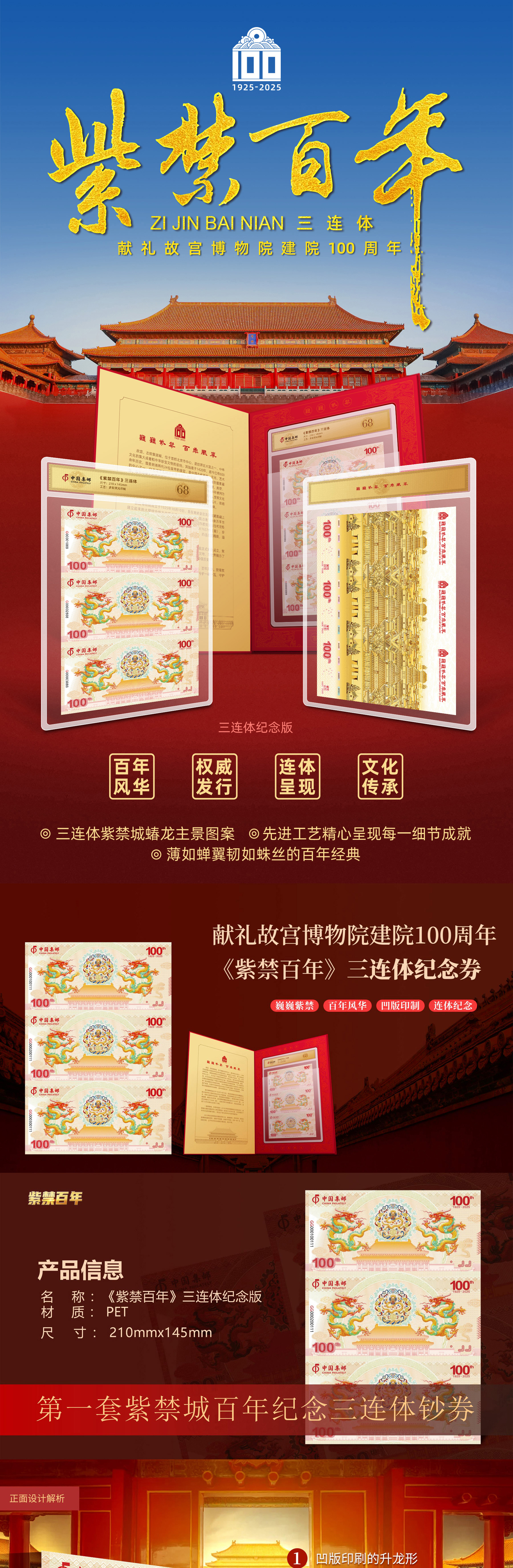 《紫禁百年》三联体纪念券,一款双官方联合发行的故宫百年纪念产品!