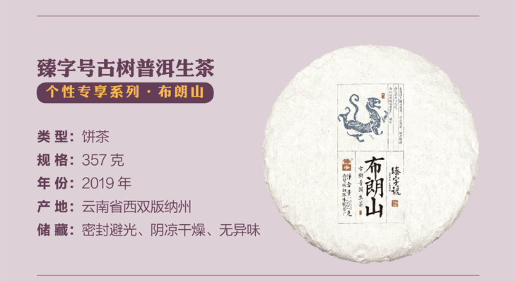 2019年 臻字号 个性专享系列 布朗山357g 普洱生茶