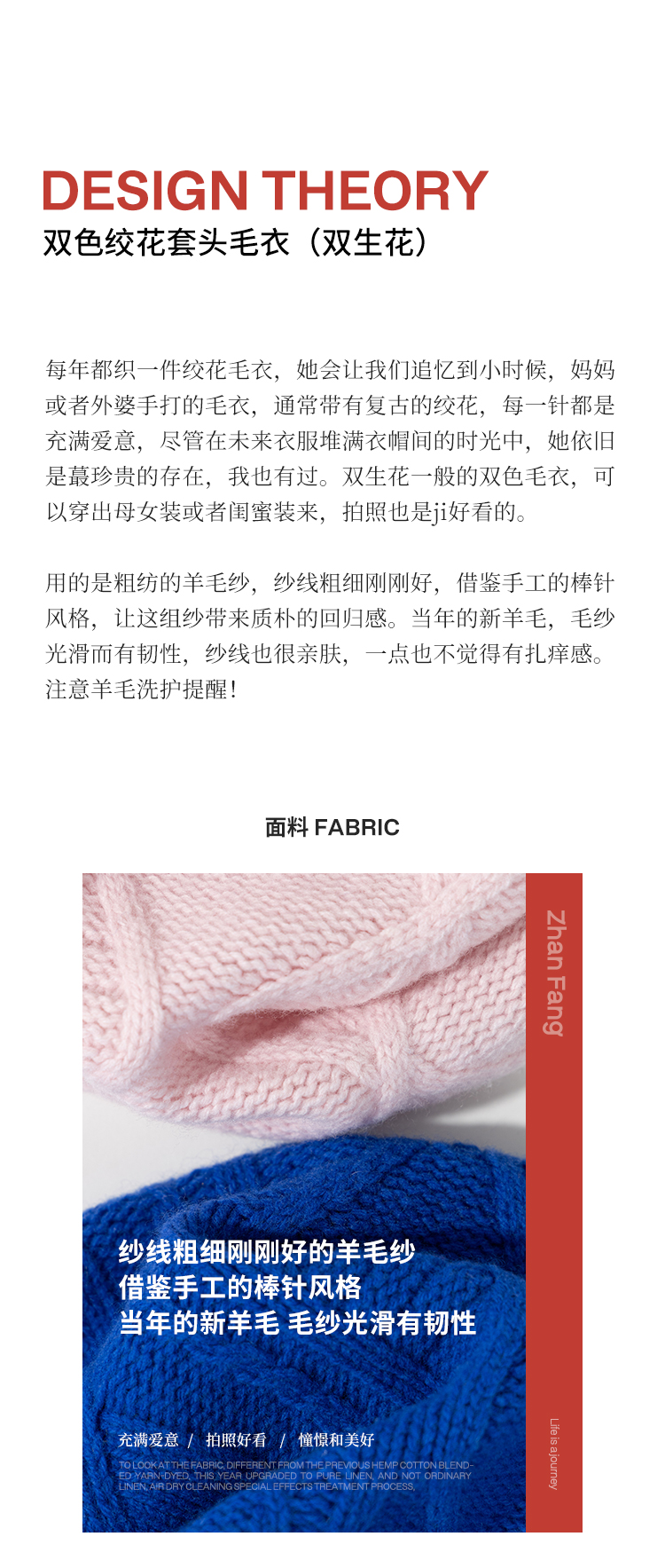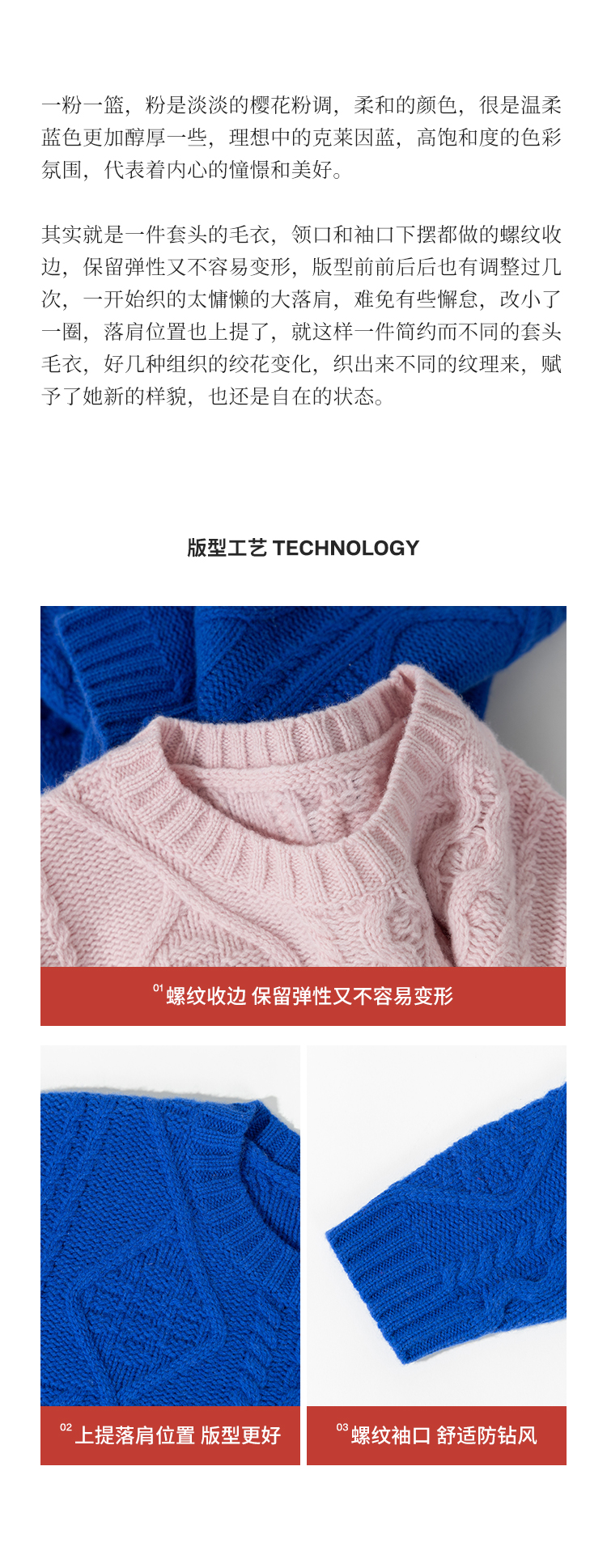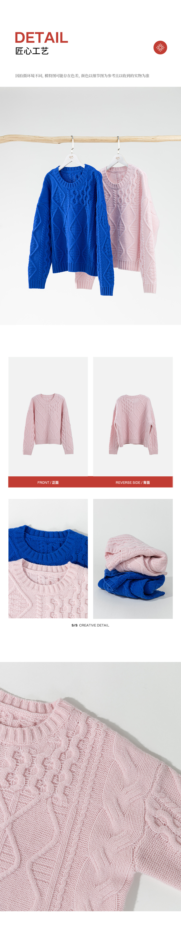 绽放011朵/100羊毛绞花针织上衣女复古棒针落肩慵懒蓝色套头毛衣