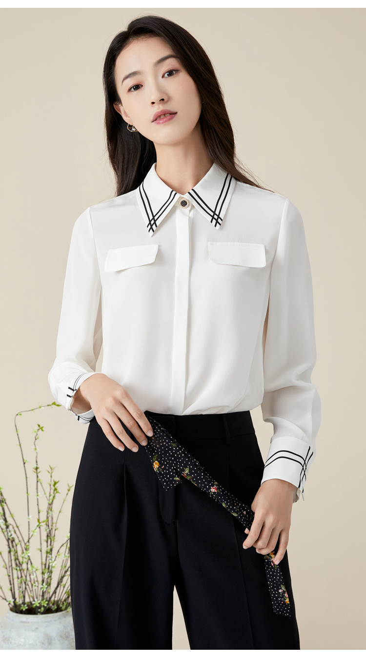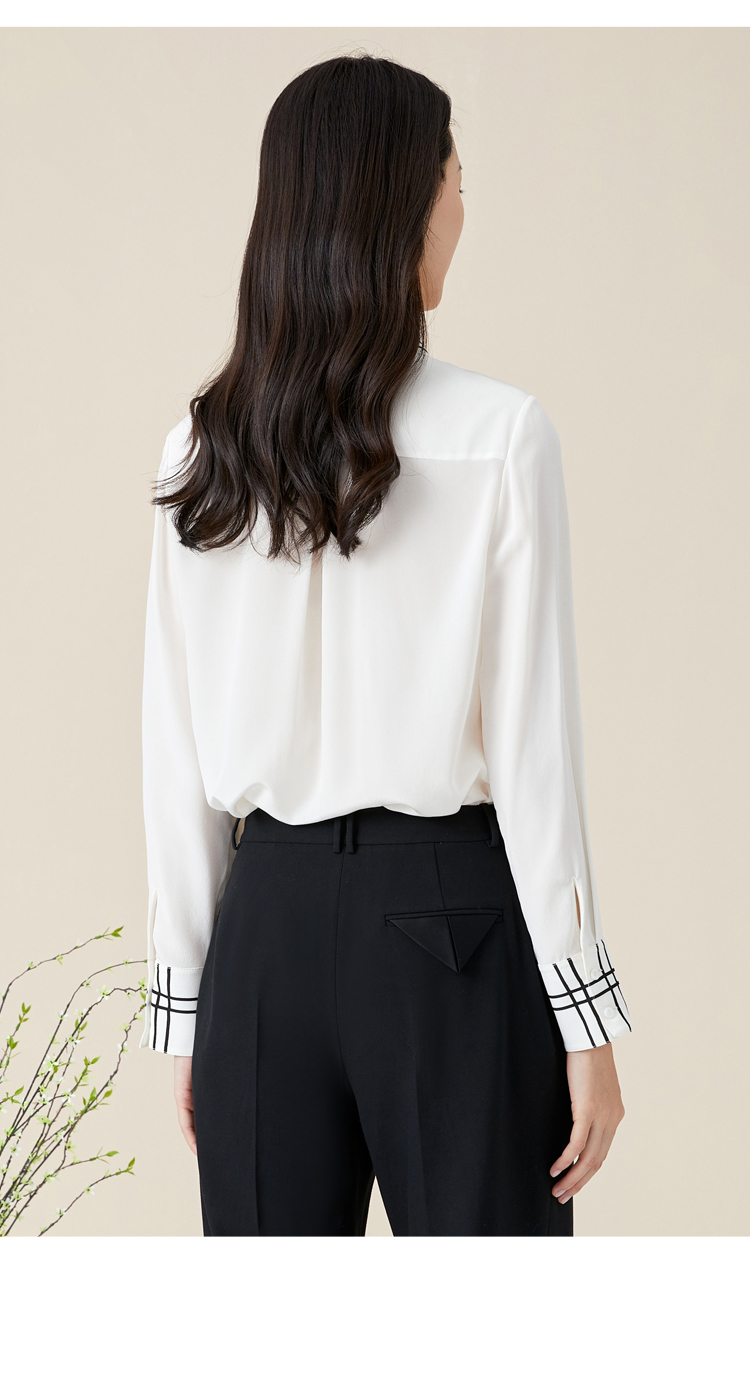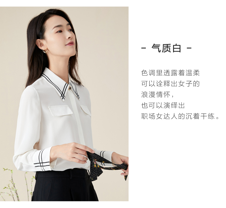 玳莎秋季新款真丝长袖衬衫女100%桑蚕丝时尚通勤复古宽松上衣 BC31304