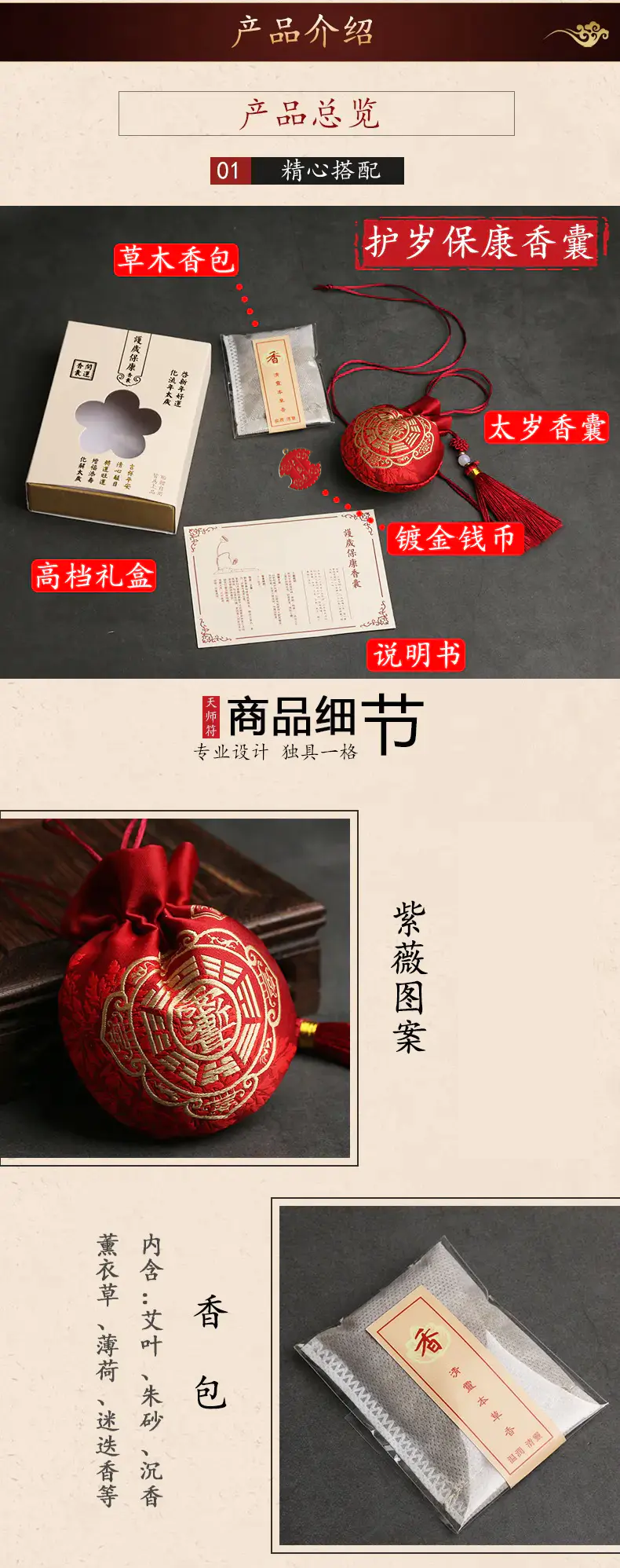 紫微讳中药香囊,手工刺绣草本香包,吉祥挂件