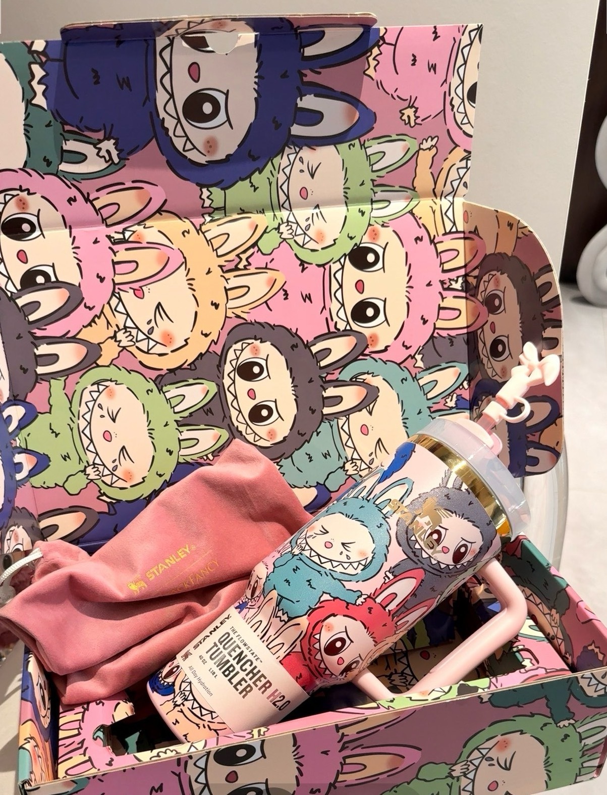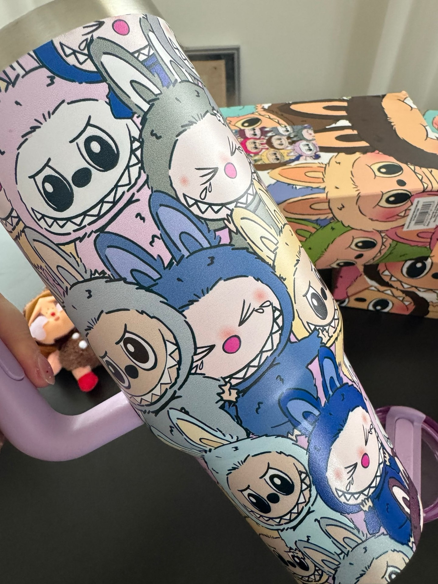 送孩子一个拉布布吧~绝对惊喜转圈圈~水杯炒到300-500+了~拉布布满屏图案更贵些~