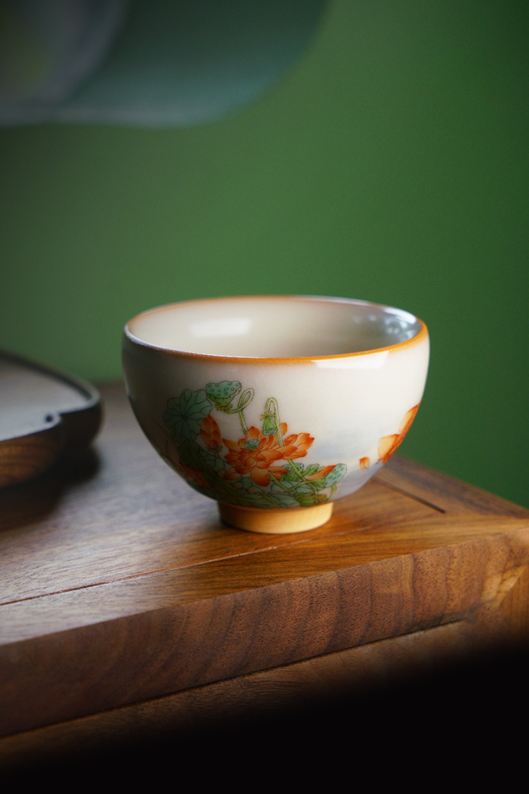 问鼎松涛彩绘哥窑玉盈杯(莲年有余)(缺货)