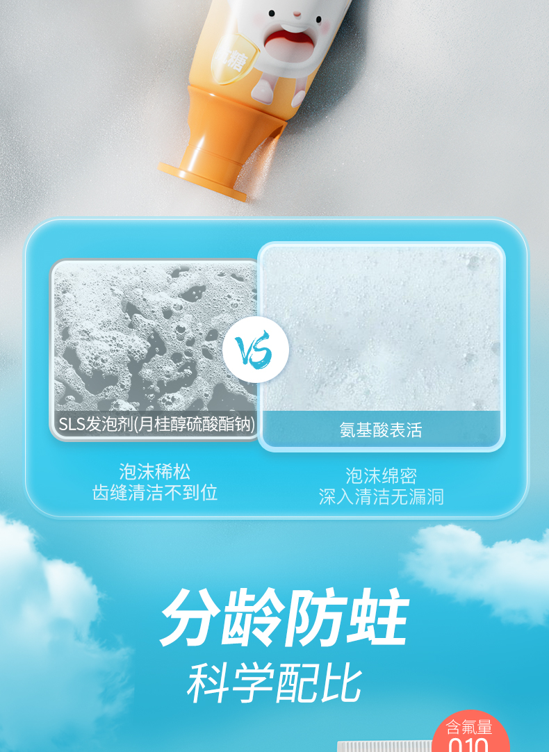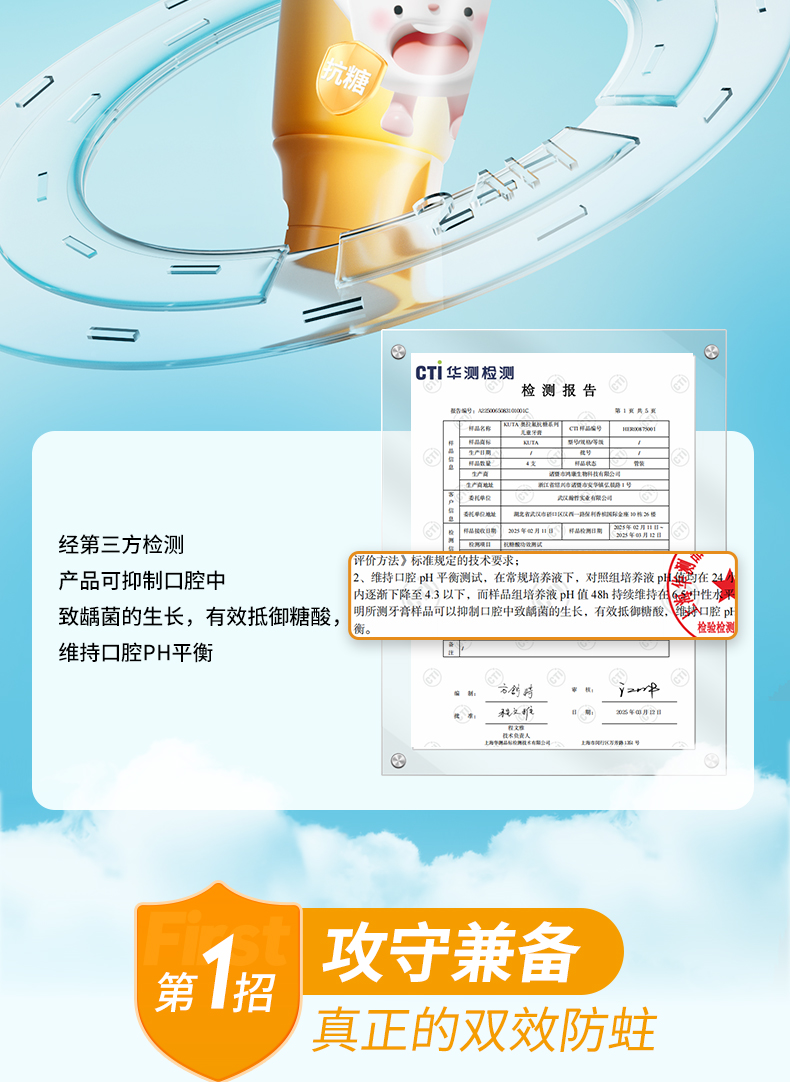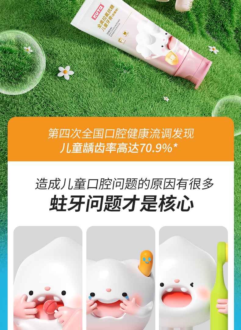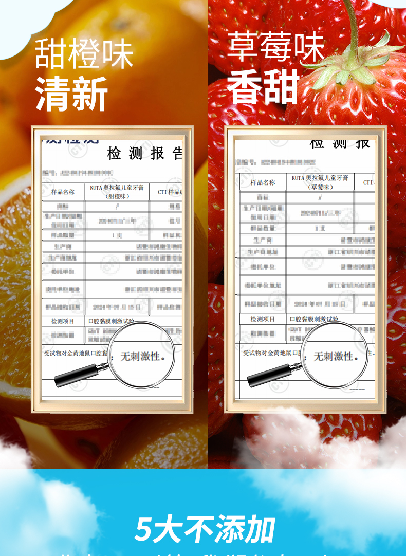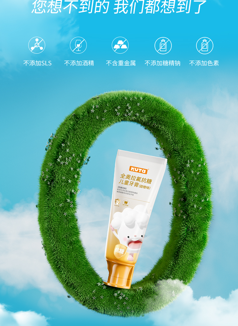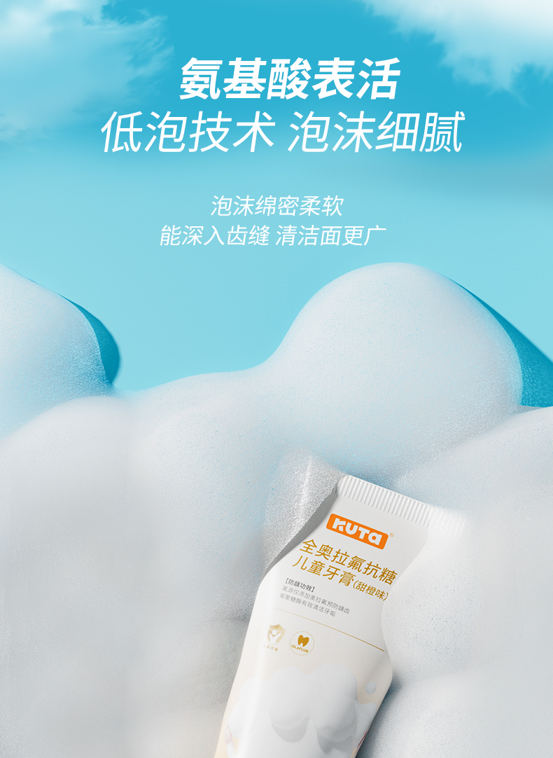 KUTA儿童奥拉氟牙膏抗糖(阳光甜橙味/草莓味)含氟牙膏50g/支儿童牙膏3岁-6岁-12岁适用