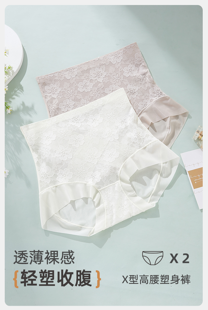 【2条装】雅黛俪女士内裤高腰收腹提臀夏季薄款三角裤高弹无痕裸感裤头