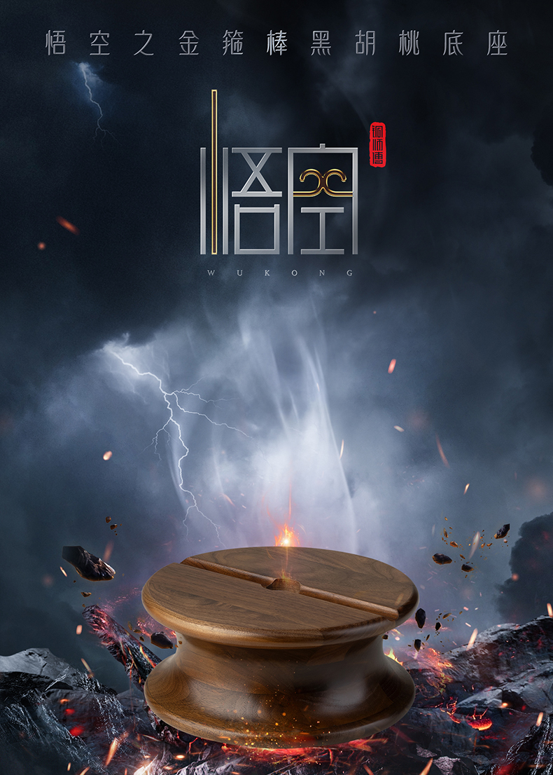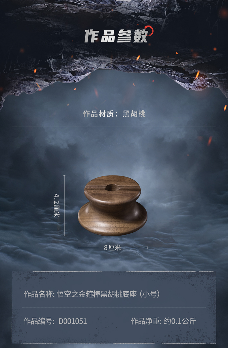 铜师傅 黑胡桃原木《金箍棒底座》工艺品摆件 圆形实木底座