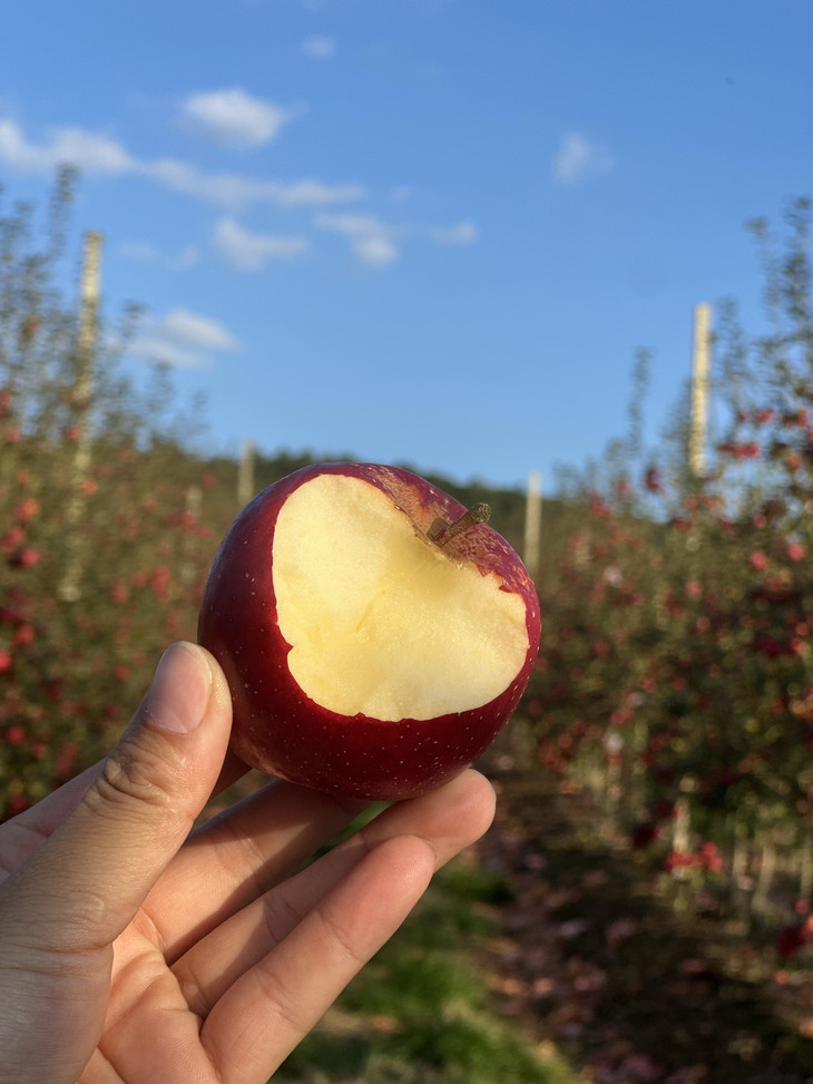 不同普通苹果绵软粉、硬脆的口感,瑞香红是温柔的脆感,一口下去刚刚好,既能满足脆果党的需求,又不磕牙,老人小孩都能吃