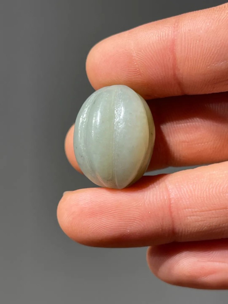 此组和田白玉瓜棱橄榄珠与白玉圆珠除凹槽局部沁淡灰沁色外,基本色泽匀称,完整无损,入手可融入当代首设计,高雅大气、独具风格,或可穿线佩戴成锁骨链,或是系线随手盘玩,手感舒适,令人心旷神怡。