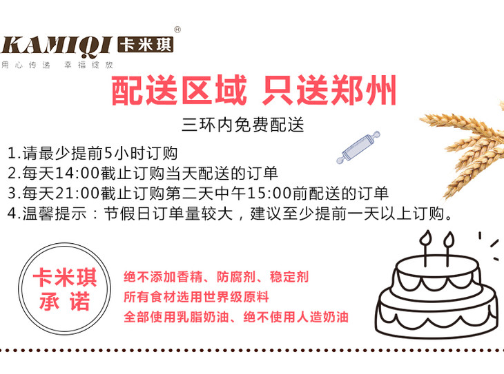 KAMIQI卡米琪,具有一颗天然匠心,追逐本真食材,呈现健康美食的高端蛋糕品牌。24小时自助订购平台,专业冷链配送新鲜到家。