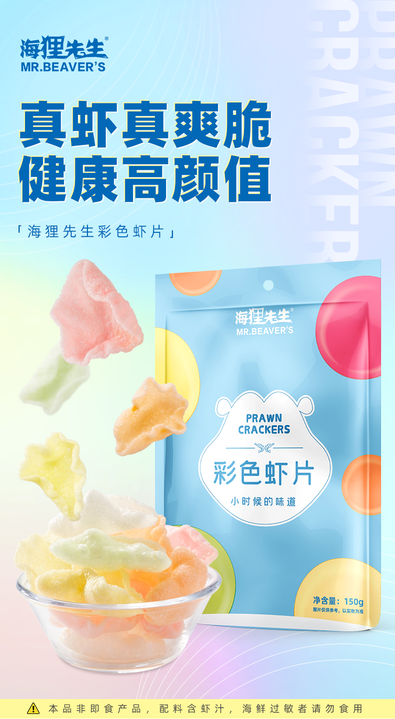 海狸先生彩色生虾片150g*3袋过油炸鲜香膨化食品db