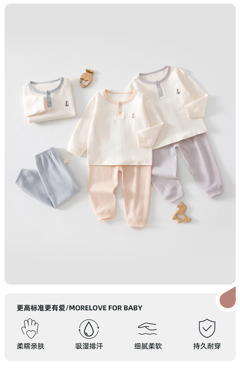 宝宝秋衣套装保暖婴儿内衣纯棉a类男女秋裤儿童家居服睡衣提花