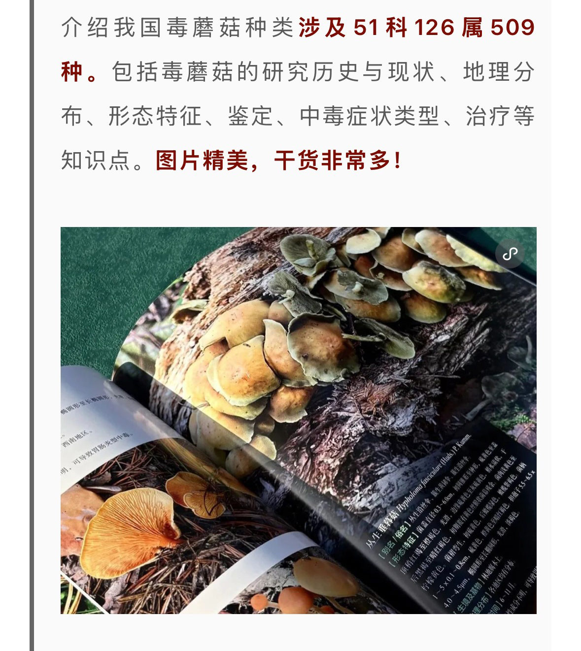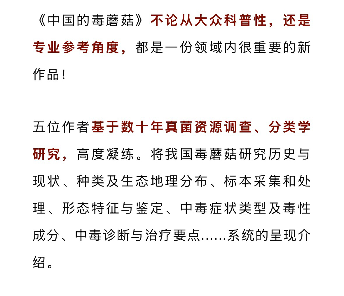 本书基于作者数十年的真菌资源调查和分类学研究,以中毒案例、毒性成分及可靠文献为依据,介绍了我国毒蘑菇研究历史与现状、种类及其生态地理分布、标本采集和处理、形态特征与鉴定、中毒症状类型及其毒性成分、中毒诊断与治疗要点等,记载了8 个中毒类型的毒蘑菇51 科126 属509 种、毒性待确定的蘑菇26 种、我国分布存疑的毒蘑菇65 种,可为毒蘑菇的快速识别与预防中毒提供科学依据。