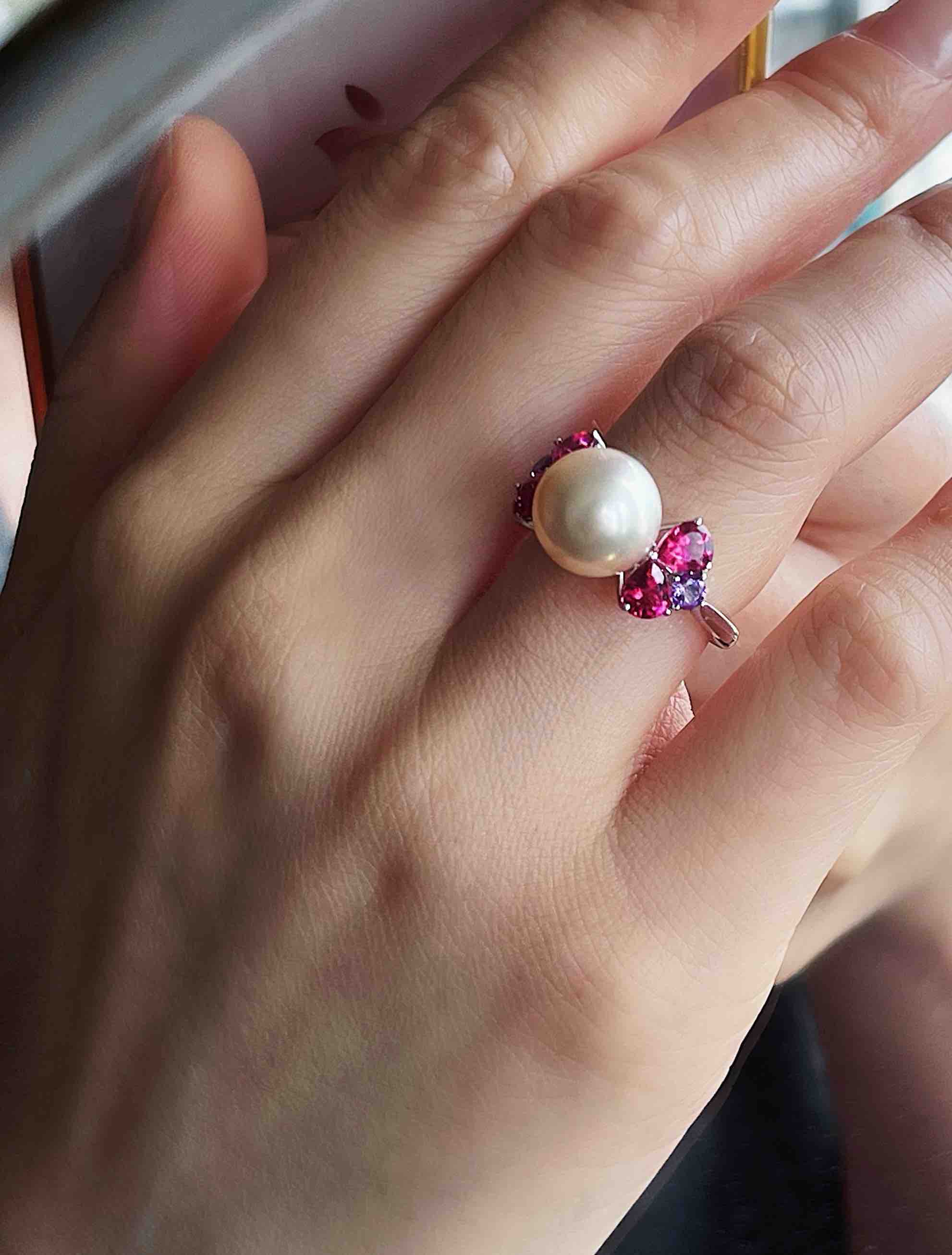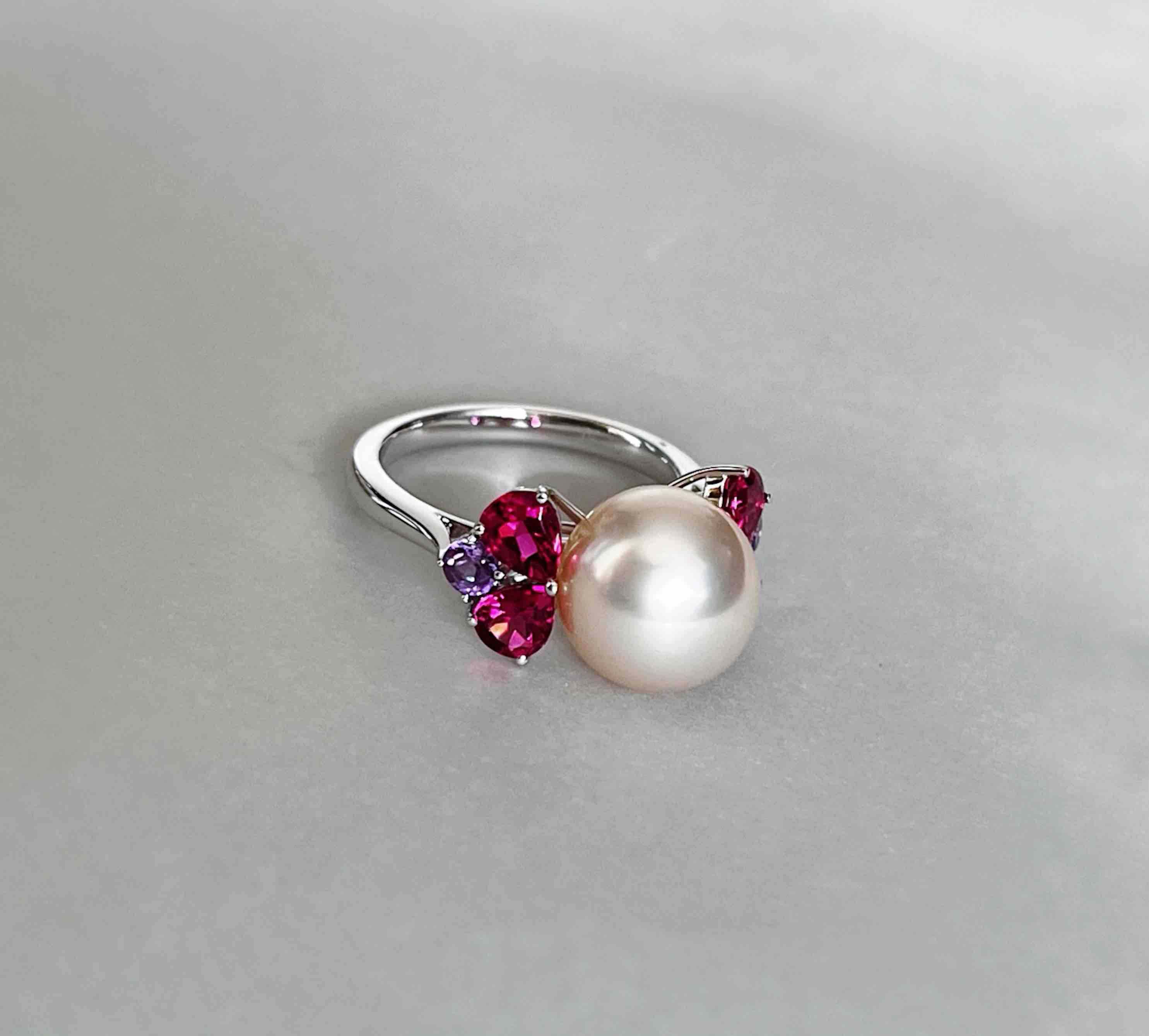 作品名称:18K镶碧玺、紫晶和南洋珍珠戒指