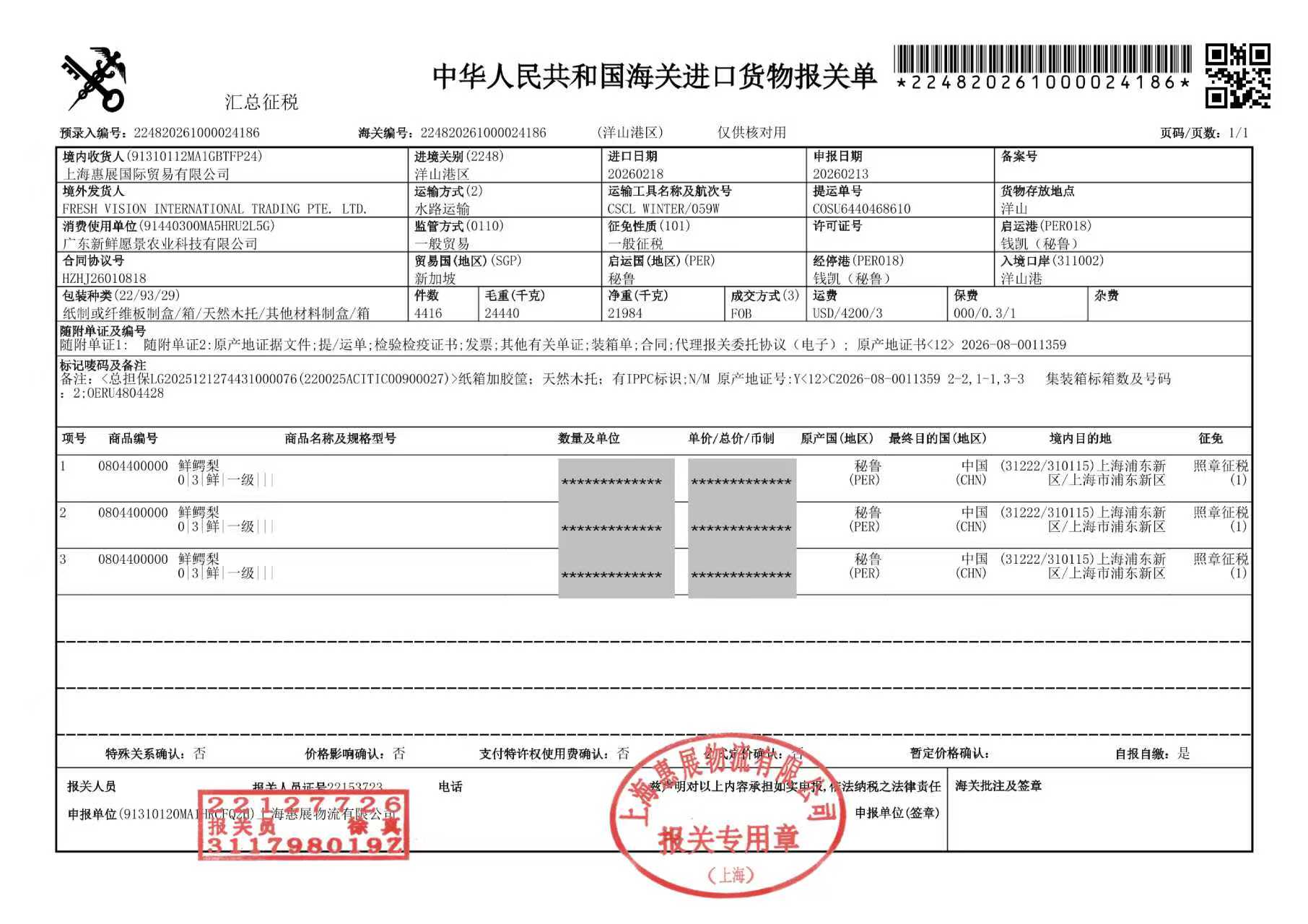 检疫报告及海关证书: