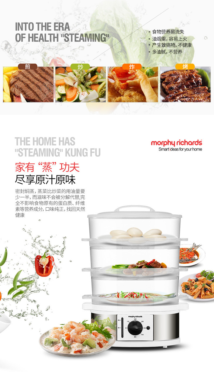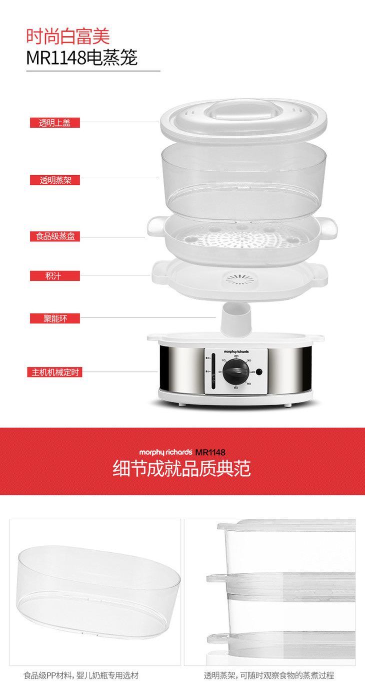 *摩飞MR1148电蒸笼多功能家用电蒸锅三层透明大容量电蒸屉