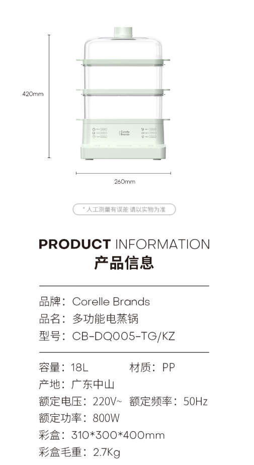 康宁多功能电蒸锅CB-DQ005-TG/KZ 18L