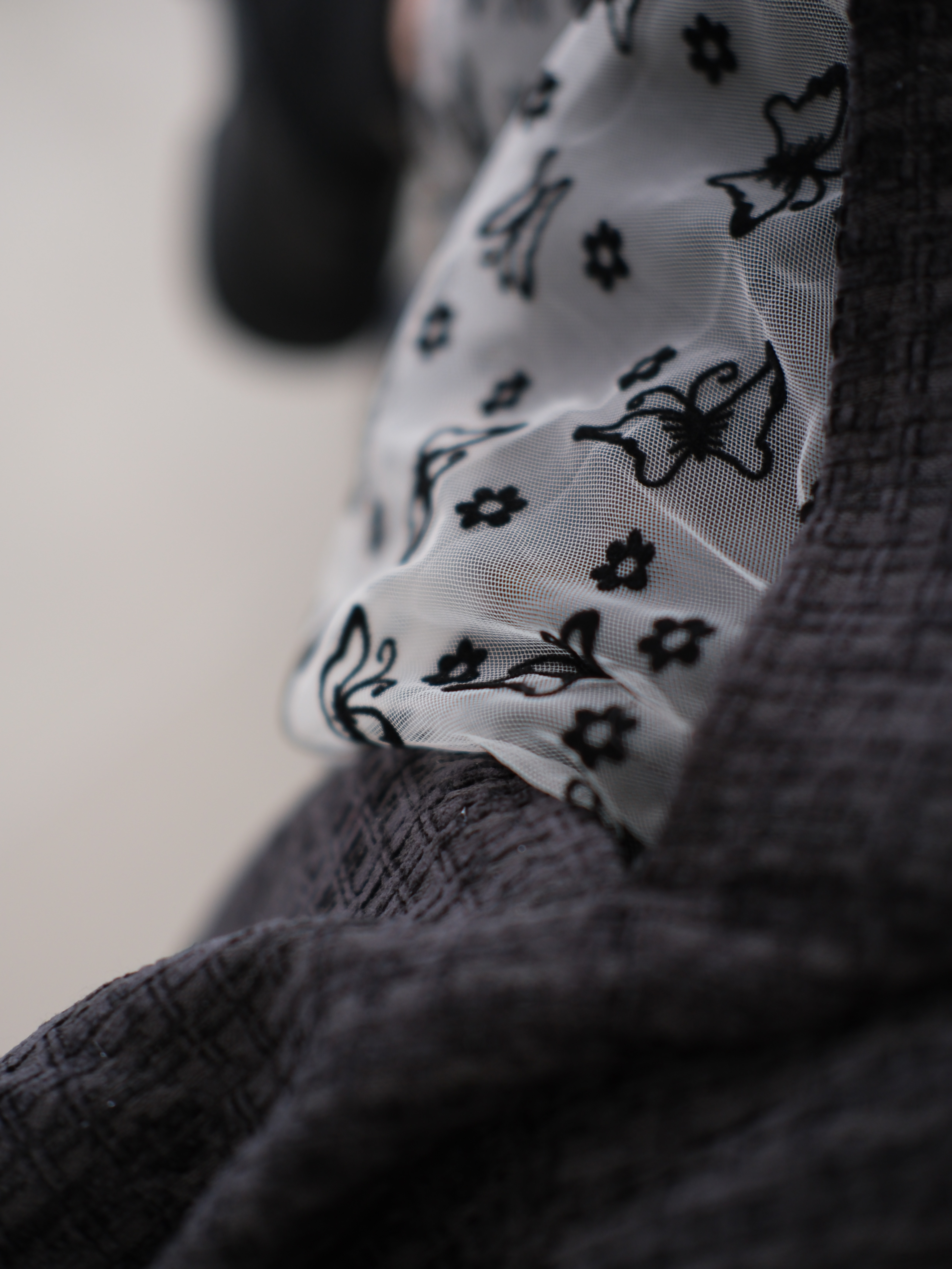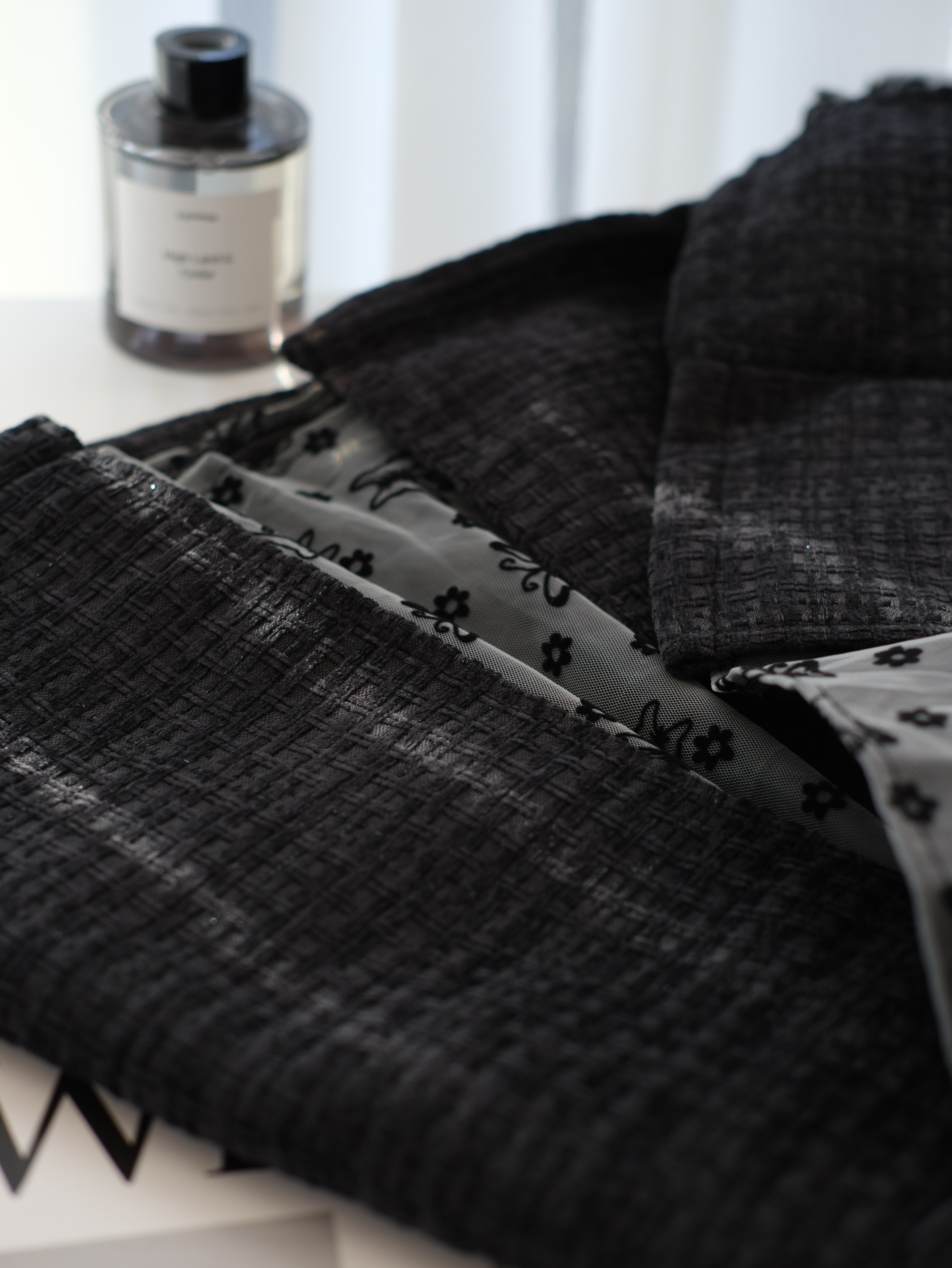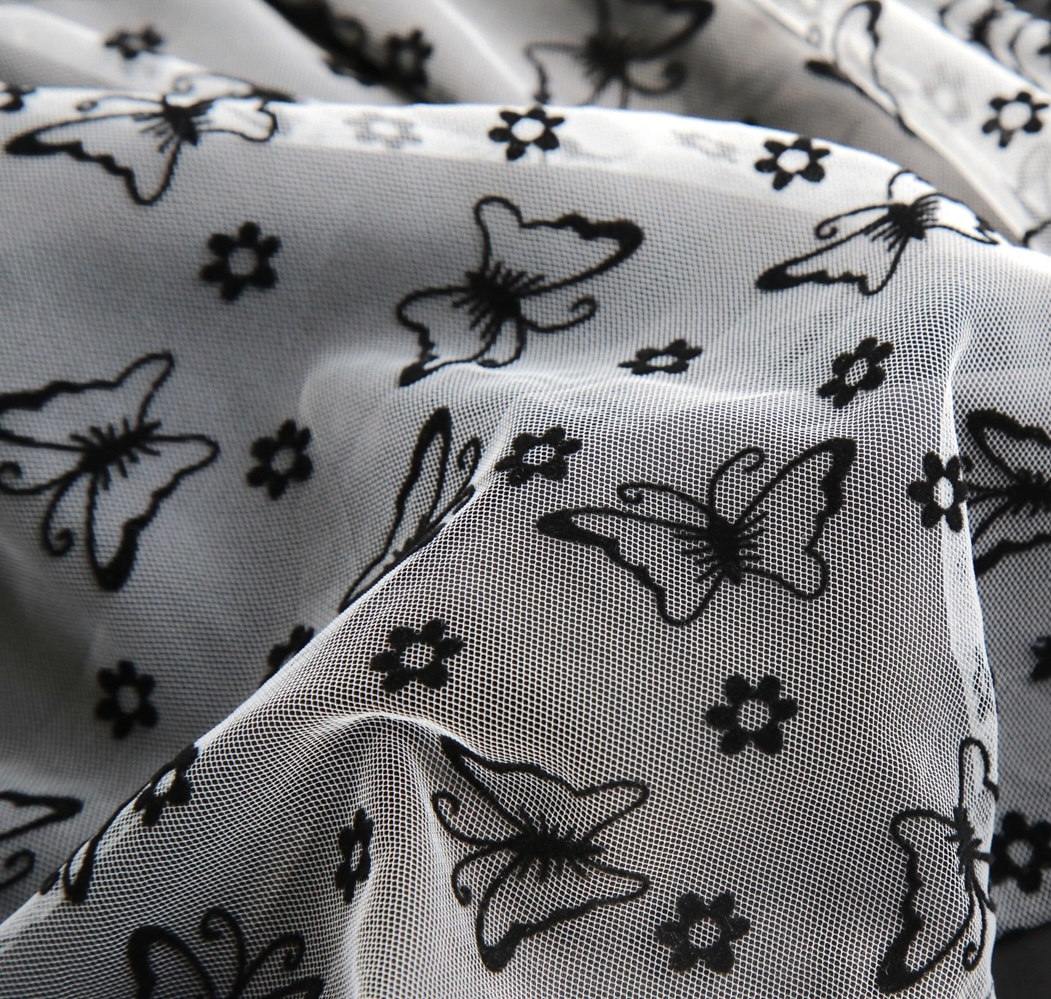 小香风细纱植绒面料拼接定制蝴蝶网纱,